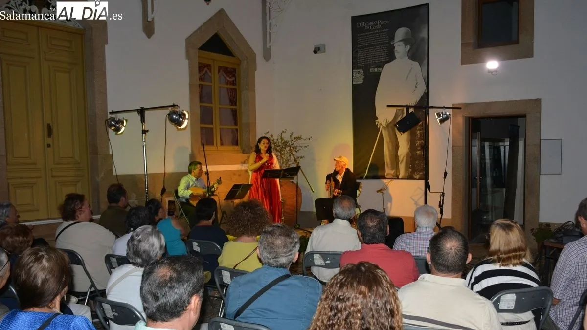 El fado, la manifestación musical más genuina de Portugal, llenó el patio de la Casa de los Condes de Lumbrales de sentimiento, añoranzas, recuerdos y cultura la noche de ayer sábado con la actuación del grupo portugués '24 cuerdas', procedente de Mogadouro. El público, que practicamente llenó el aforo, disfrutó de un didáctico concierto sobre el fado portugués, un género musical reconocido por la UNESCO como Patrimonio Cultural Inmaterial de la Humanidad desde 2011. Esta expresión musical refleja la identidad y la historia de Portugal, especialmentea "saudade", un sentimiento de nostalgia y melancolía que caracteriza al pueblo portugués.