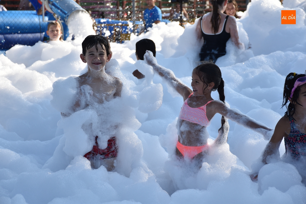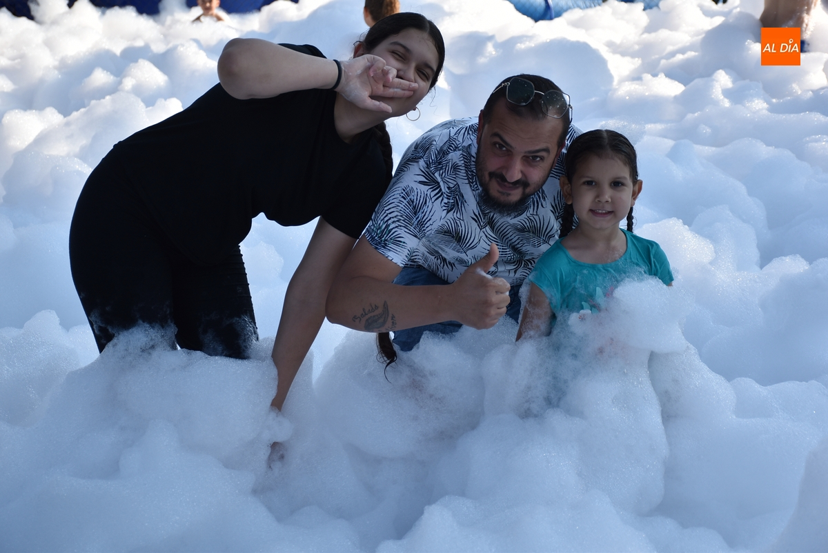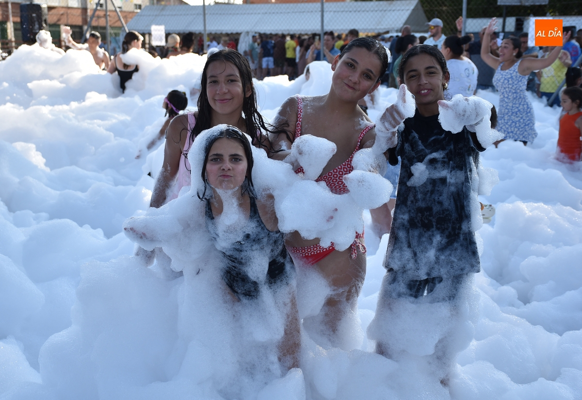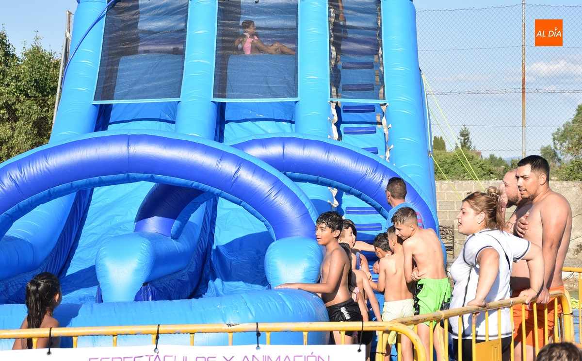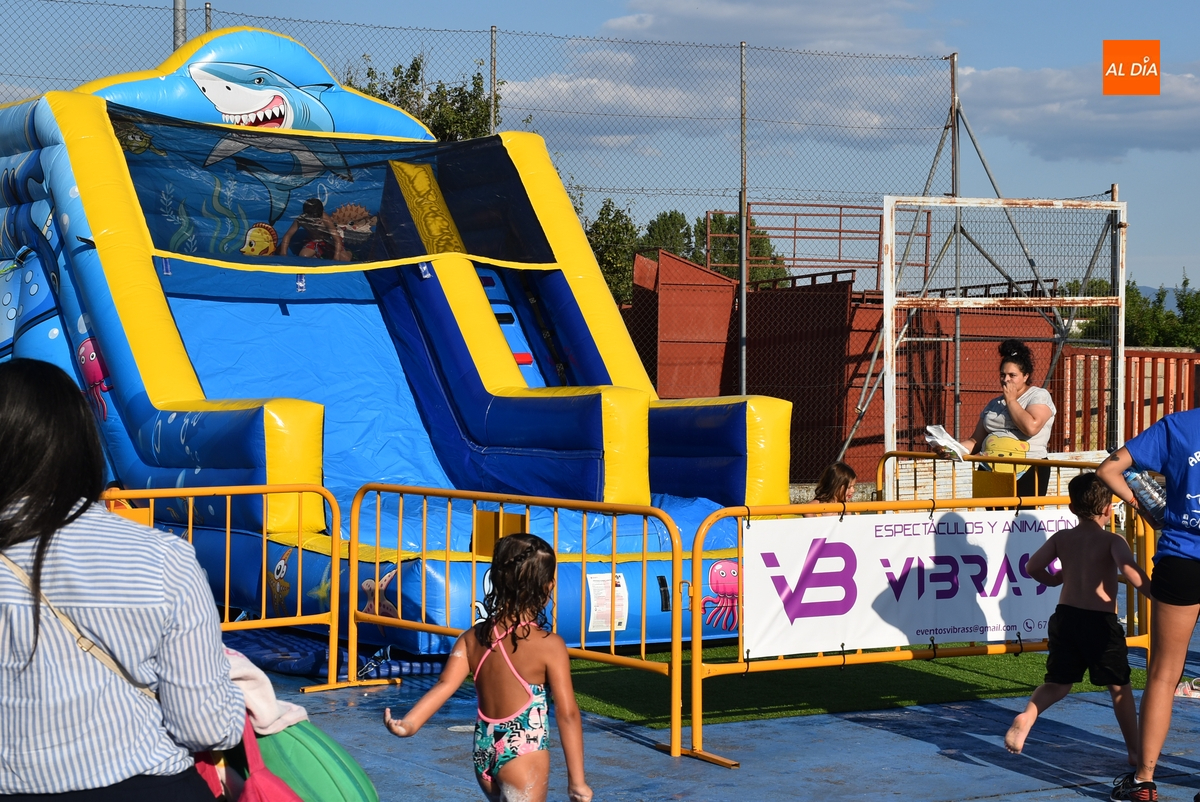 Tras el encierro de carretones de la tarde del sábado, los más pequeños volvieron a tener otra cita en la tarde del domingo dentro de las fiestas de la Asociación de Vecinos del Barrio Nuevo de Ciudad Rodrigo, en este caso, con una sesión de hinchables acuáticos y una fiesta de la espuma, con los cuales pudieron aliviar el calor reinante, que sin ser extremo, sí era intenso.