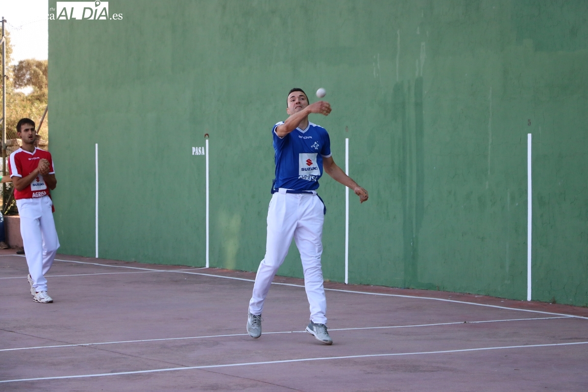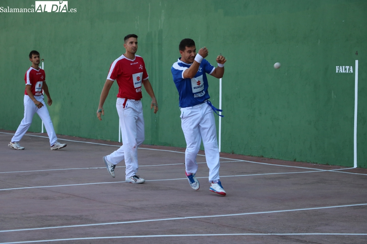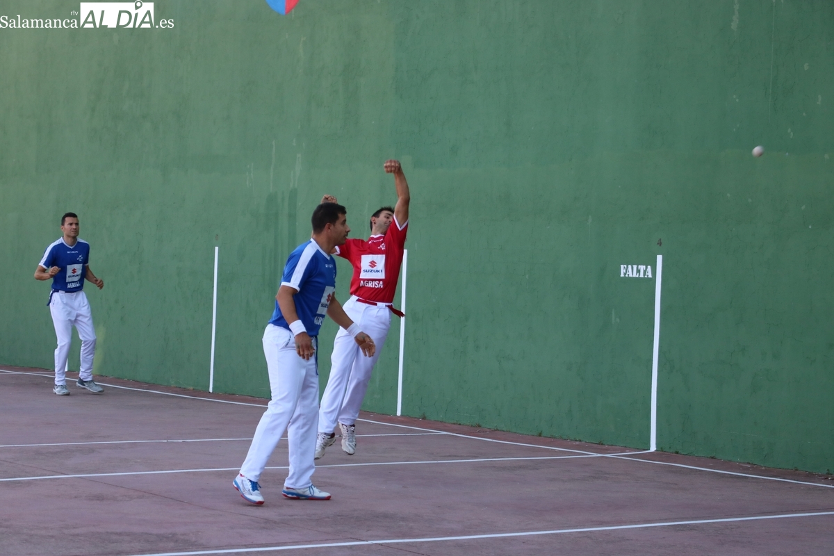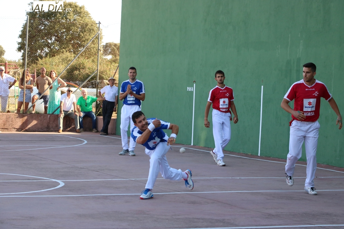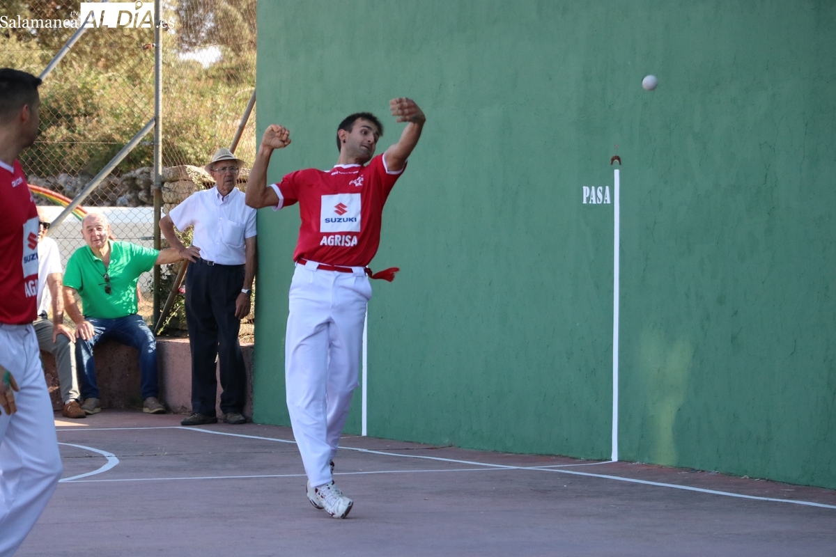 El frontón municipal registró una buena afluencia de aficionados para presenciar un encuentro que prometía intensidad y no defraudó. Se enfrentaban la pareja de rojo, Sancho y Aransay, contra la de azul, Díaz Romo y García, en un partido que, aunque inicialmente estaba pactado a 22 tantos, tuvo que alargarse por su extrema igualdad.