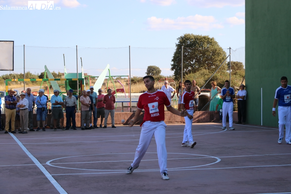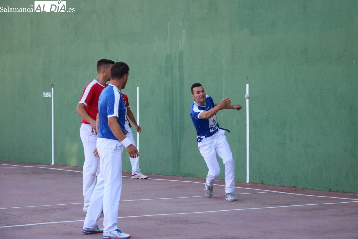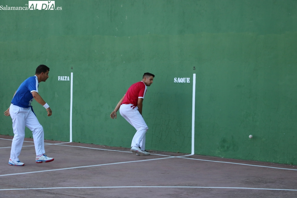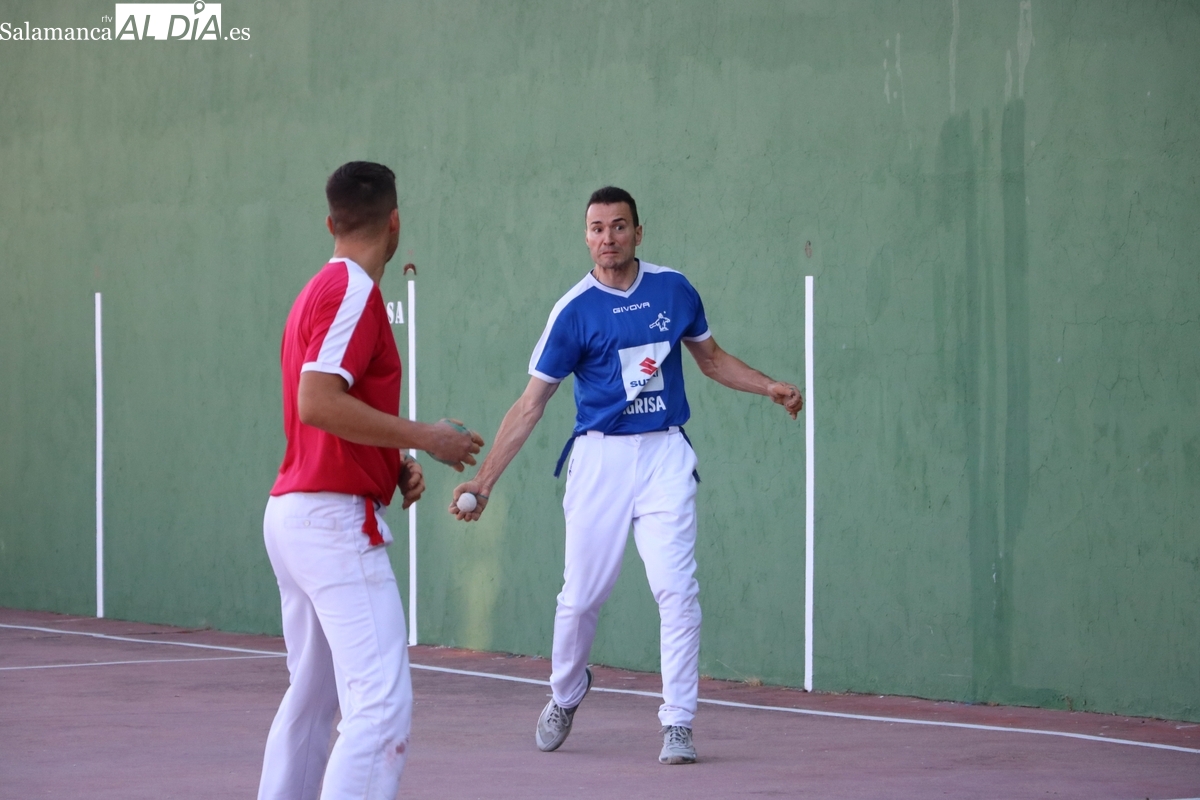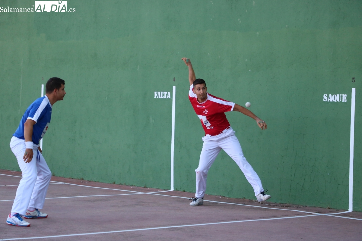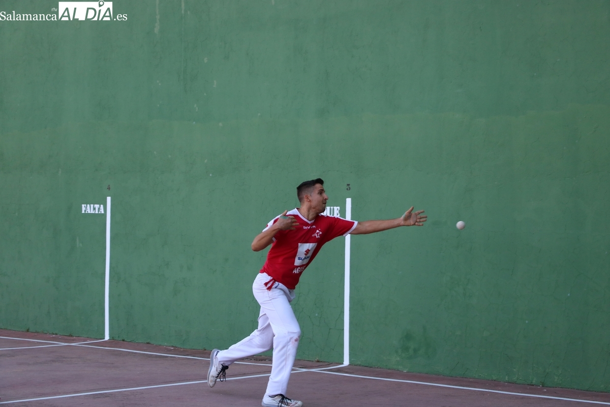 El frontón municipal registró una buena afluencia de aficionados para presenciar un encuentro que prometía intensidad y no defraudó. Se enfrentaban la pareja de rojo, Sancho y Aransay, contra la de azul, Díaz Romo y García, en un partido que, aunque inicialmente estaba pactado a 22 tantos, tuvo que alargarse por su extrema igualdad.
