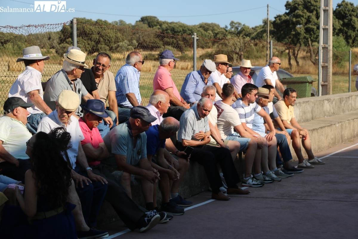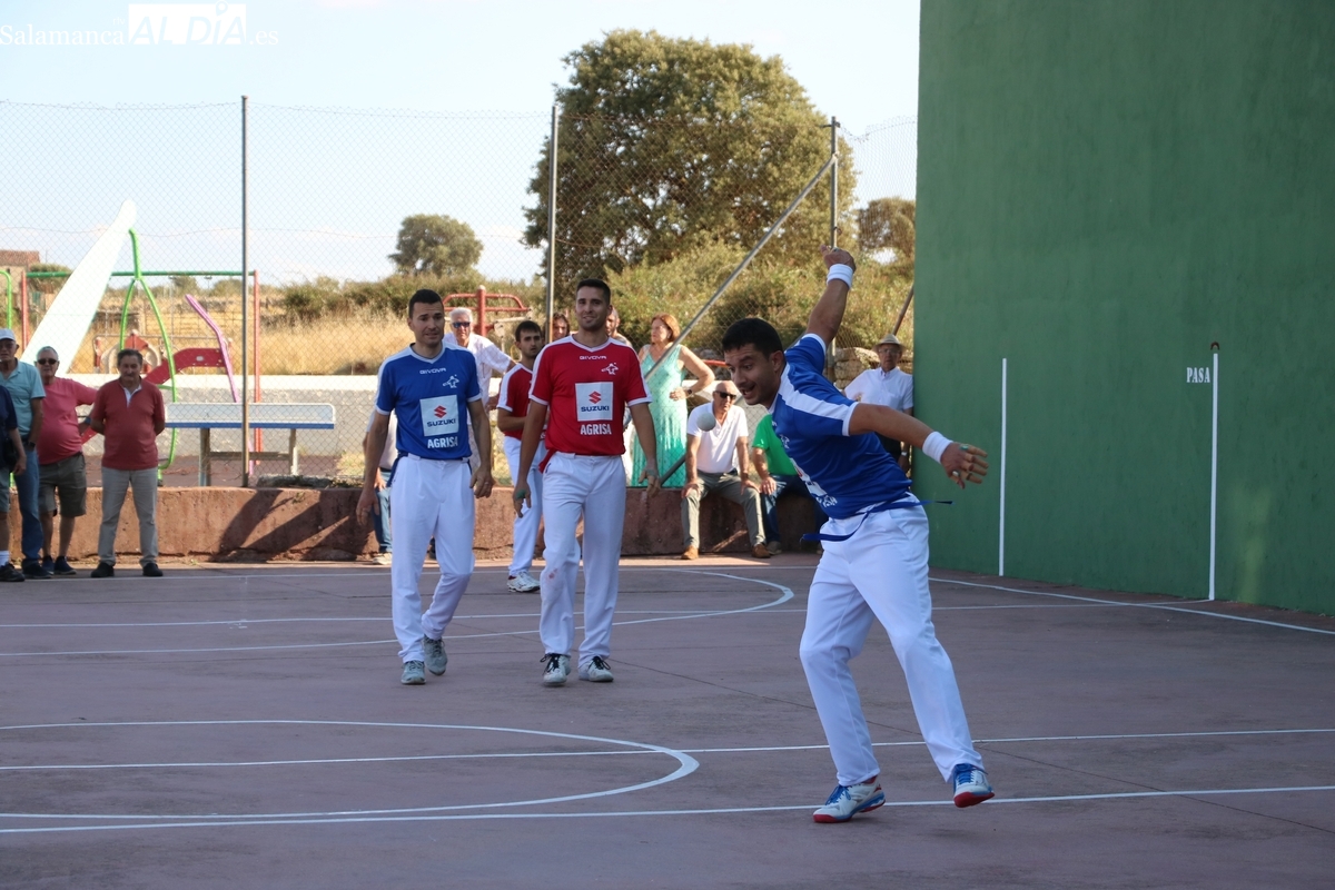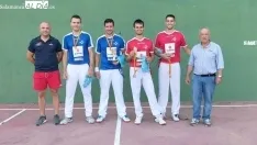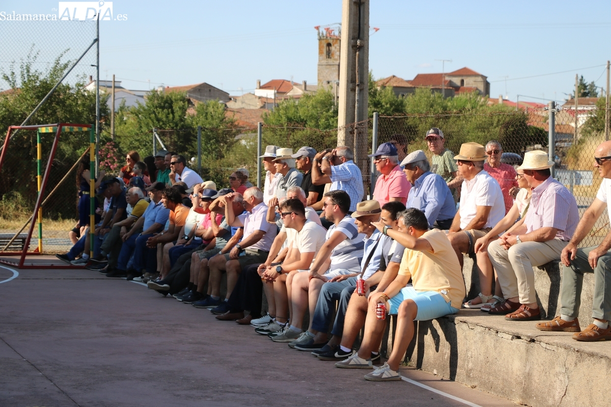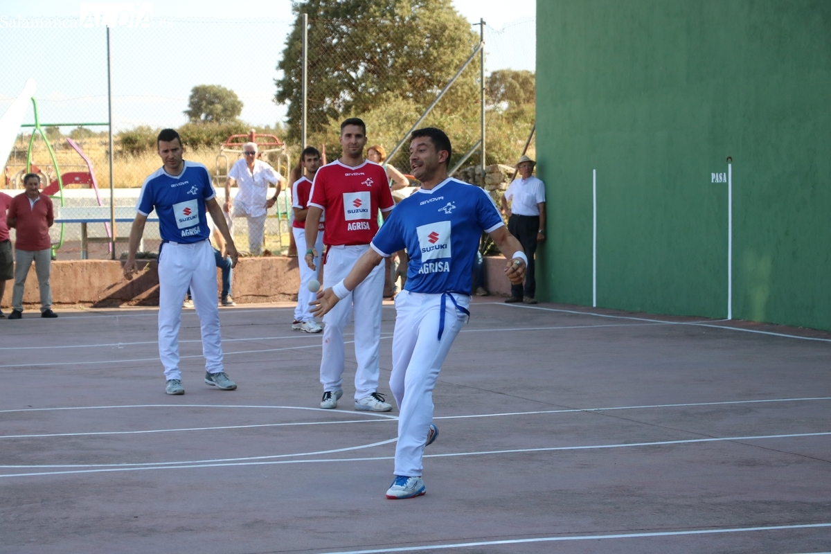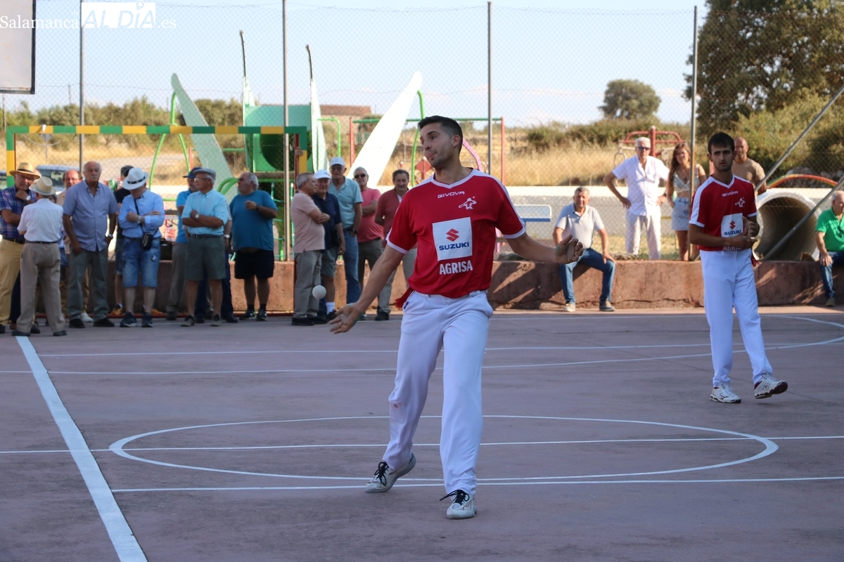 El frontón municipal registró una buena afluencia de aficionados para presenciar un encuentro que prometía intensidad y no defraudó. Se enfrentaban la pareja de rojo, Sancho y Aransay, contra la de azul, Díaz Romo y García, en un partido que, aunque inicialmente estaba pactado a 22 tantos, tuvo que alargarse por su extrema igualdad.