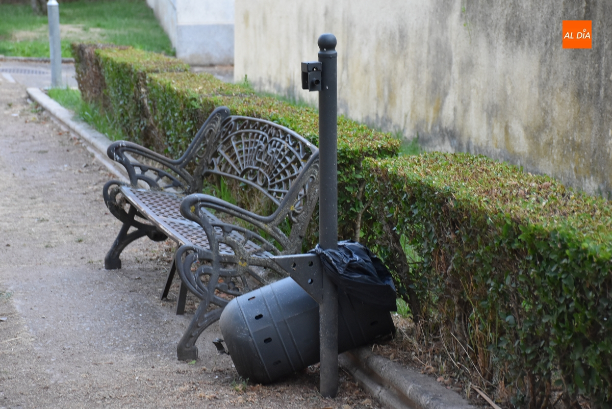 El conjunto de papeleras situadas en la entrada desde la calle Peña del Sastre hacia el Camino de las Higueras de Ciudad Rodrigo han sufrido durante este segundo fin de semana de julio (en algún momento comprendido entre la tarde del sábado y la tarde del domingo) un ataque vandálico múltiple.