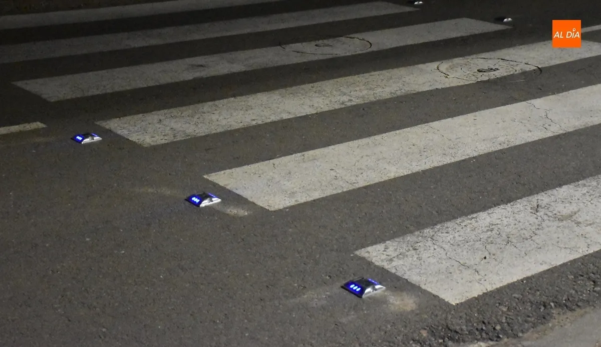 A diferencia de los ‘ojos de gato’ con los que cuentan numerosos pasos de cebra de la ciudad, que únicamente brillan cuando los faros de un coche se reflejan en los mismos, estos avisadores emiten de forma continua una luz intermitente de color azul.