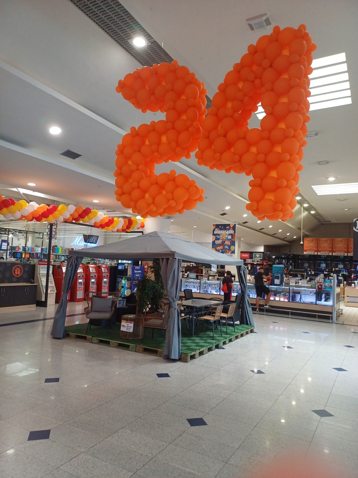 En paralelo a las compras, la celebración del aniversario trae consigo un programa de actividades pensado especialmente para los más pequeños. Cada tarde, en horario de 18:00 a 21:30 horas, el parking del hipermercado se transforma en un espacio lúdico gestionado por Divertilandia Park, que incluye atracciones como hinchables, casetas y un trenecito.