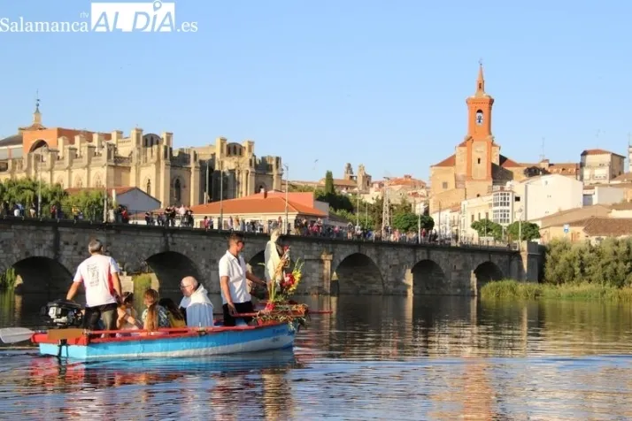 La imagen de la Virgen navega por las aguas del Río Tormes en una procesión marinera. La imagen de la Virgen es portada en una barca principal, vistosamente engalanada para la ocasión con flores y estandartes. La procesión inicia un solemne recorrido por el Tormes, escoltada por un cortejo de otras embarcaciones ocupadas por fieles y devotos.