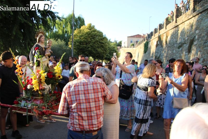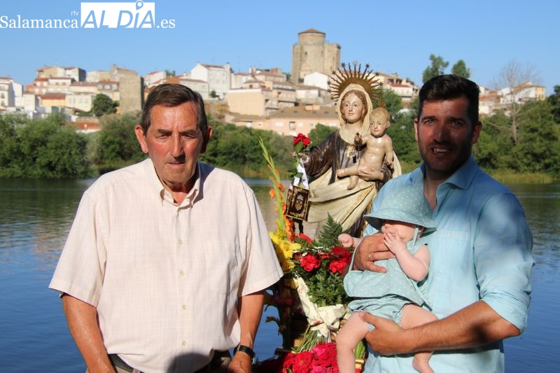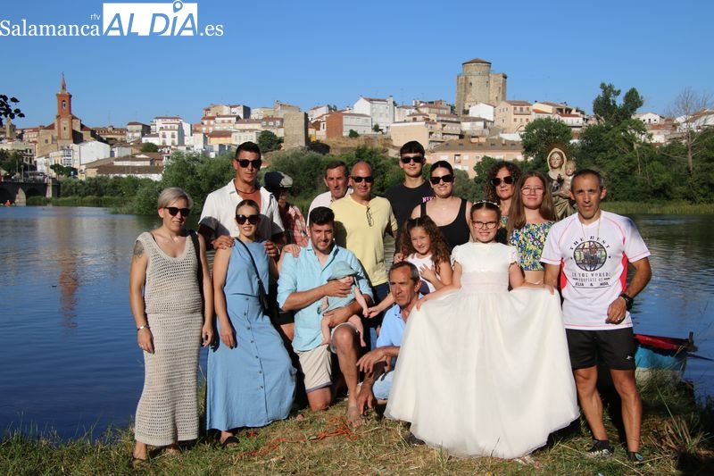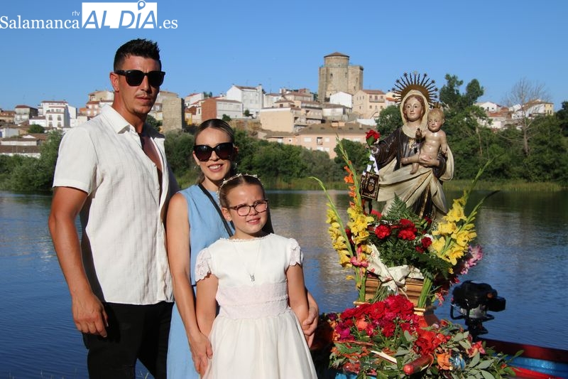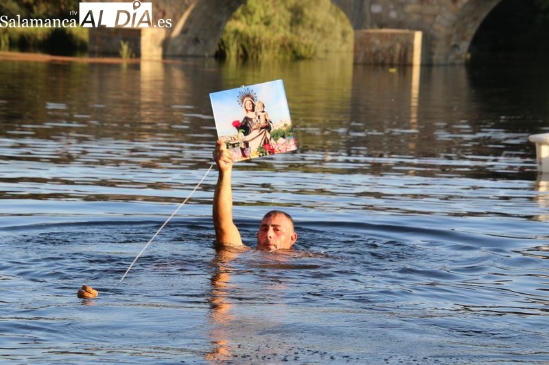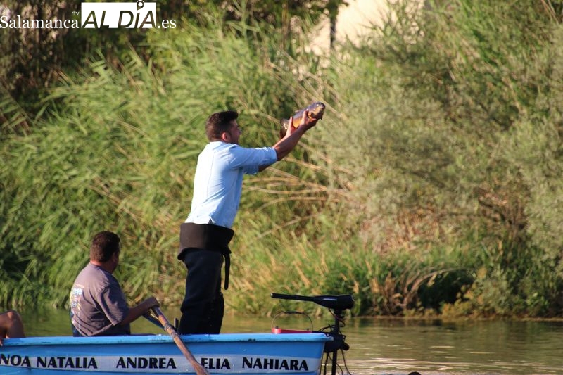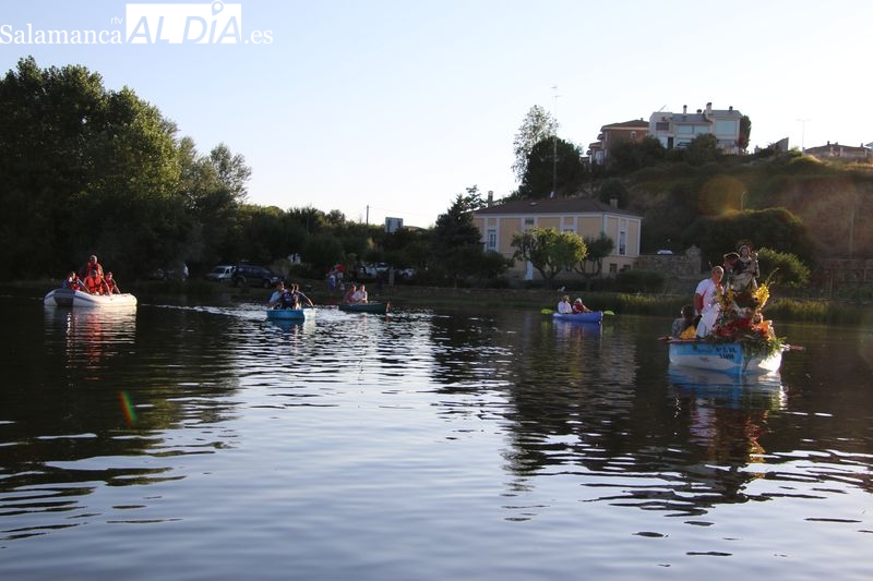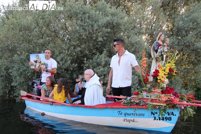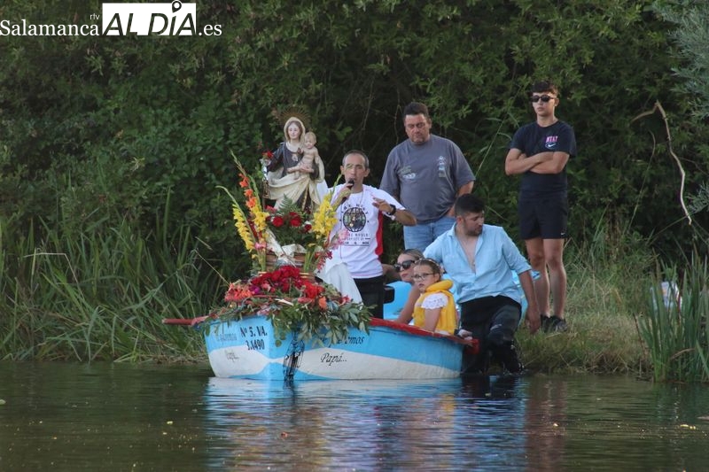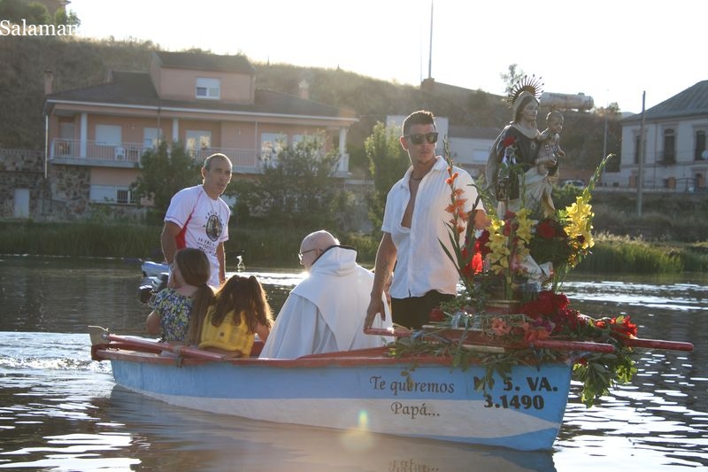 La imagen de la Virgen navega por las aguas del Río Tormes en una procesión marinera. La imagen de la Virgen es portada en una barca principal, vistosamente engalanada para la ocasión con flores y estandartes. La procesión inicia un solemne recorrido por el Tormes, escoltada por un cortejo de otras embarcaciones ocupadas por fieles y devotos.