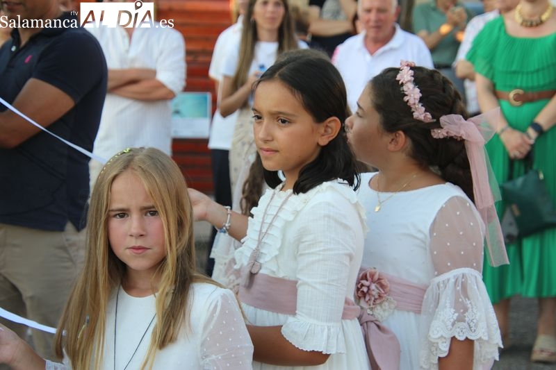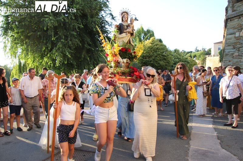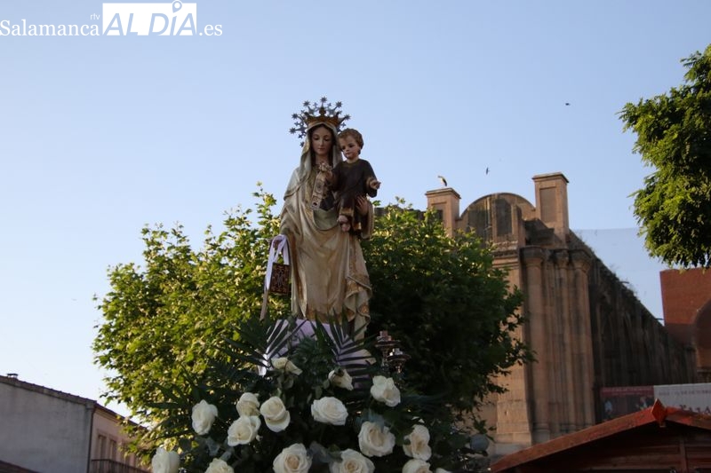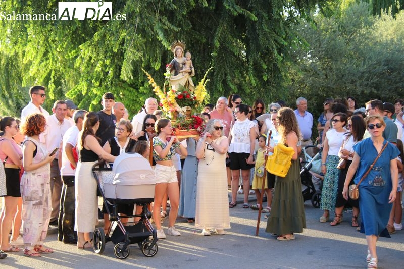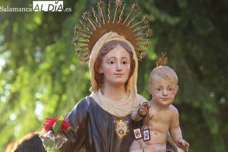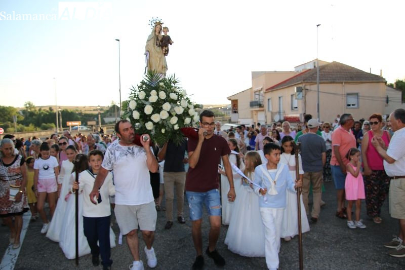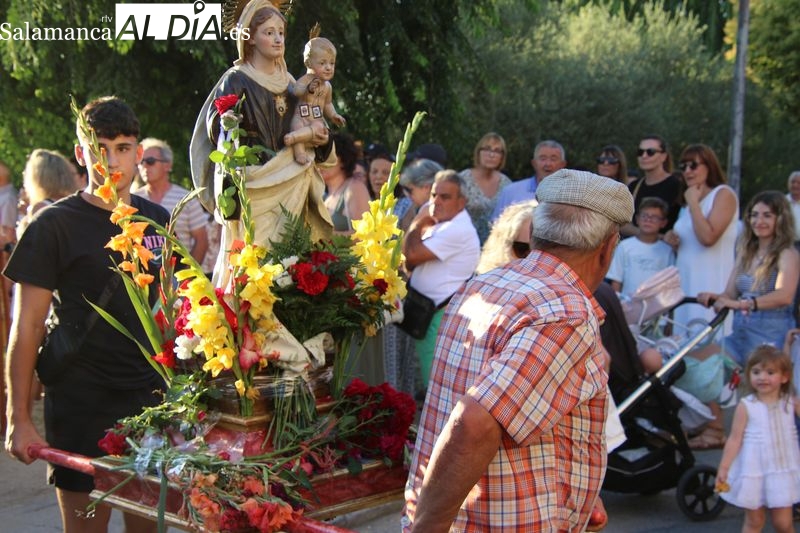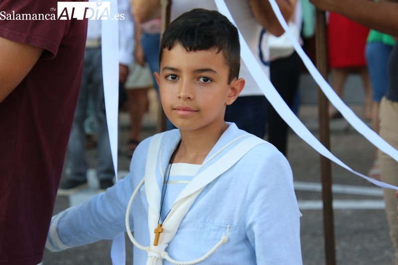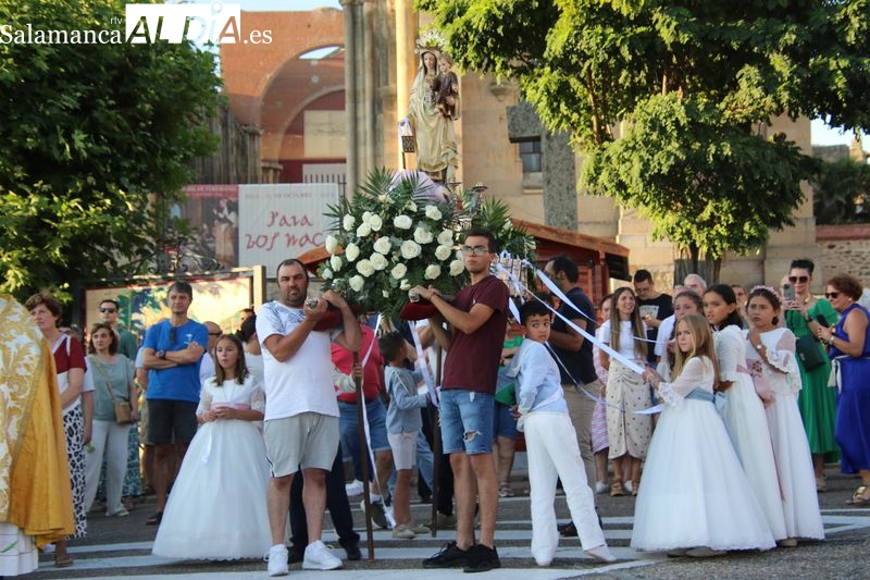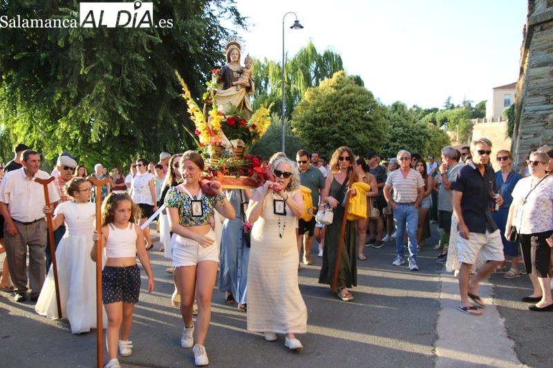 La imagen de la Virgen navega por las aguas del Río Tormes en una procesión marinera. La imagen de la Virgen es portada en una barca principal, vistosamente engalanada para la ocasión con flores y estandartes. La procesión inicia un solemne recorrido por el Tormes, escoltada por un cortejo de otras embarcaciones ocupadas por fieles y devotos.