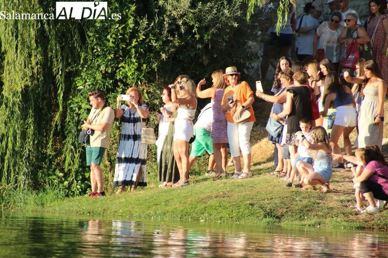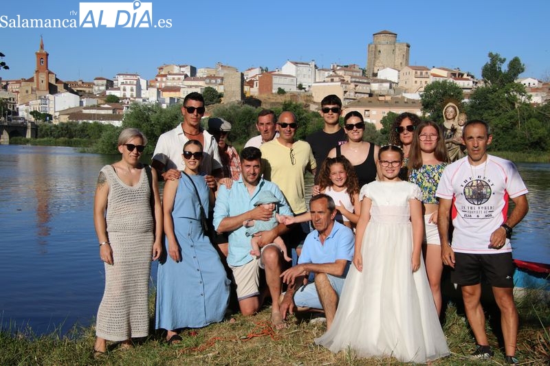 El momento más esperado llegó tras la misa de las 19:00 horas. Como cada año, las aguas del río Tormes se convierten en el escenario de un emotivo homenaje que fusiona la fe religiosa con la identidad cultural de la villa ducal, atrayendo a numerosos vecinos y visitantes a sus orillas. Todo se mantiene vivo gracias al trabajo histórico de la Familia Cosme.