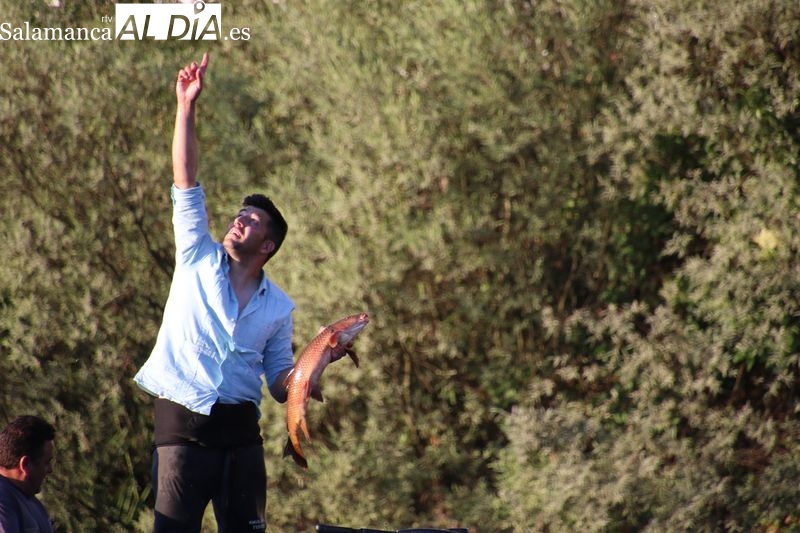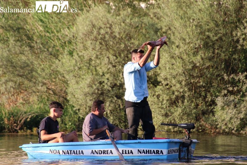 Este evento no solo es un acto religioso, sino también un espectáculo visual que resalta la belleza del entorno natural de Alba de Tormes y su profundo vínculo con el río que la atraviesa. Durante esta tradición anual, los pescadores extraen del fondo del río el escapulario de la Virgen, este año Juan José Marcos fue el encargado de zambullirse en el agua para extraer el cuadro. Por su parte, y como es tradición, Cosme fue la persona encargada de lanzar al río nuevamente los peces que han caído en sus redes.