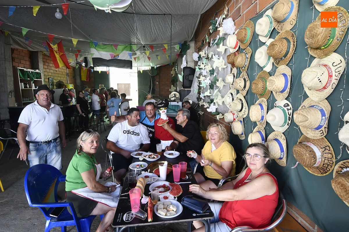 Son seis matrimonios, llevan cinco años juntos, antes eran miembros de otras peñas, pero la vida les ha ido juntando y ahora tienen una buena peña en la calle Victoriano Revelo, un lugar muy céntrico, espacioso y tranquilo a la vez en pleno corazón de la fiesta.