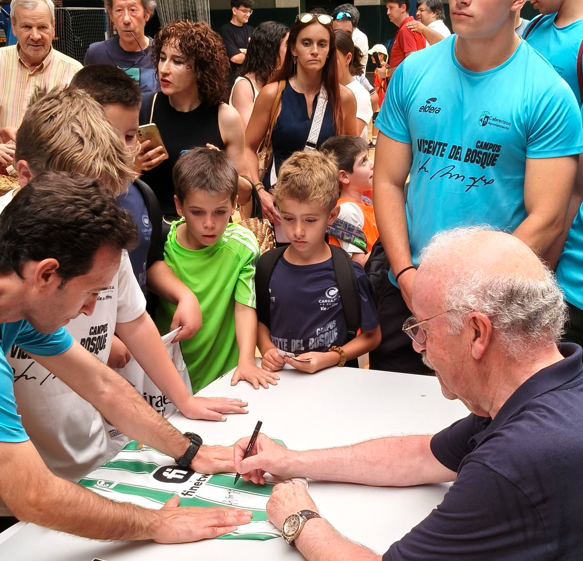 La visita del entrenador salmantino ha supuesto un momento inolvidable para las decenas niños y niñas que participan este año en el campus, quienes han podido compartir experiencias, recibir consejos, hacer preguntas y fotografiarse con una de las figuras más queridas del deporte español y con la réplica del trofeo del Mundial de fútbol.