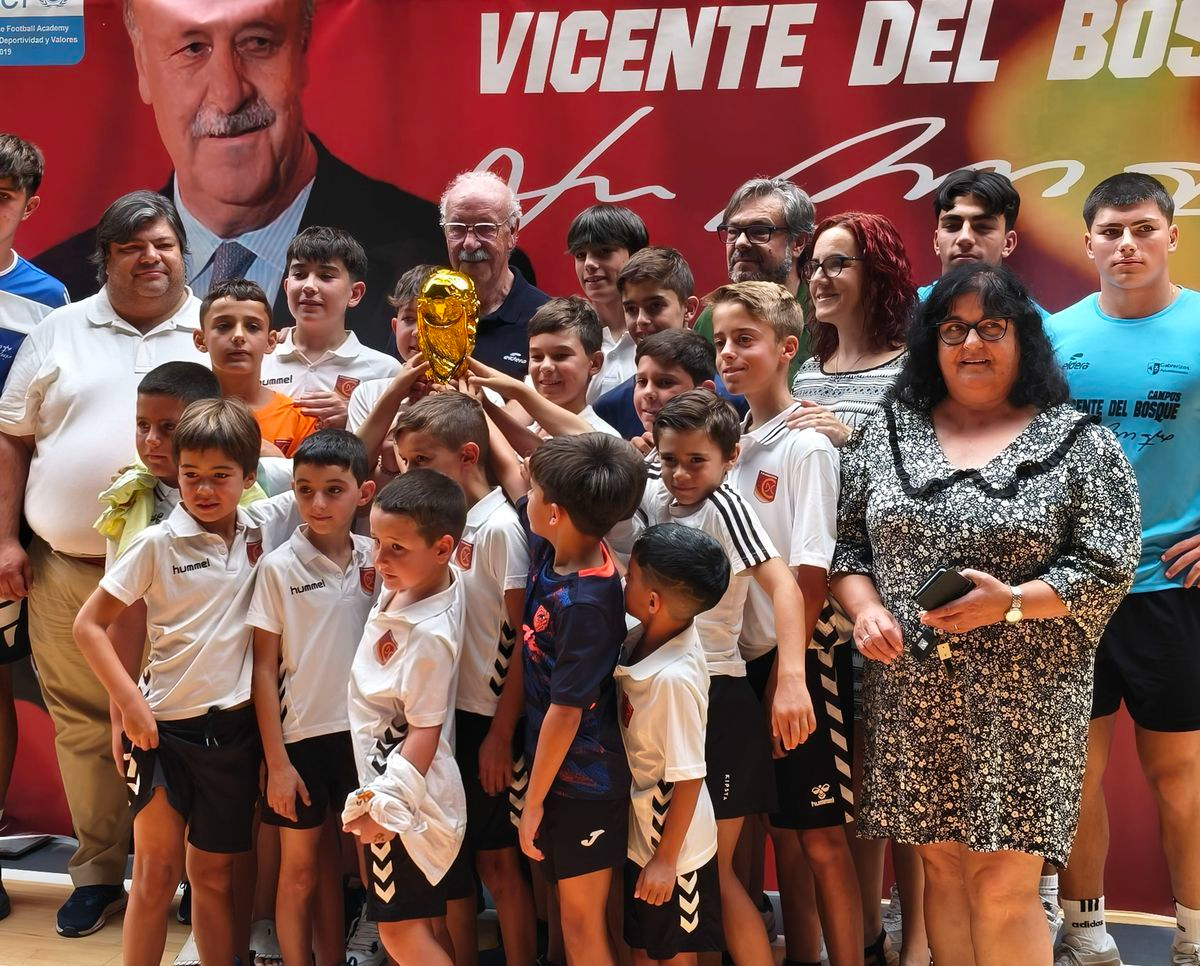 El Campus Vicente del Bosque, organizado por C.D. Carbajosa en colaboración con la Football Academy Vicente del Bosque, que se celebra durante todo el mes de julio en las instalaciones deportivas de Carbajosa de la Sagrada, ha recibido este miércoles una visita muy especial, la del propio Vicente del Bosque, ex seleccionador nacional de fútbol y campeón del mundo con España en 2010.