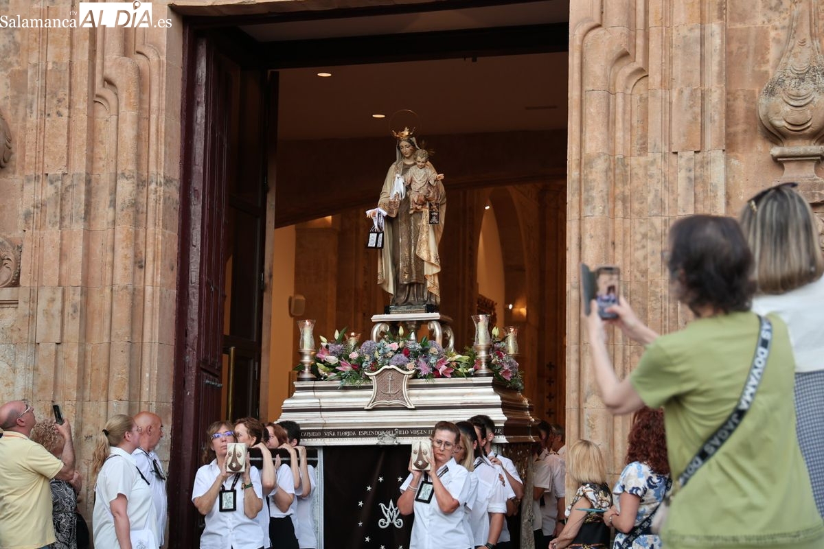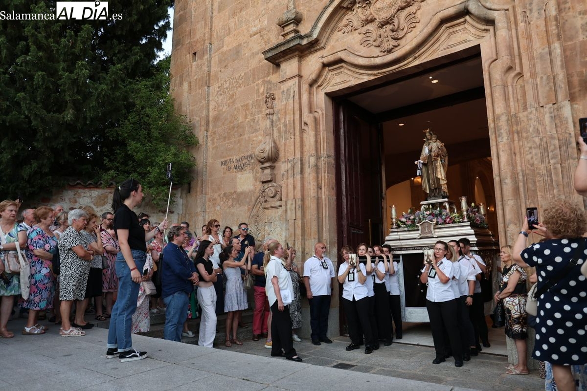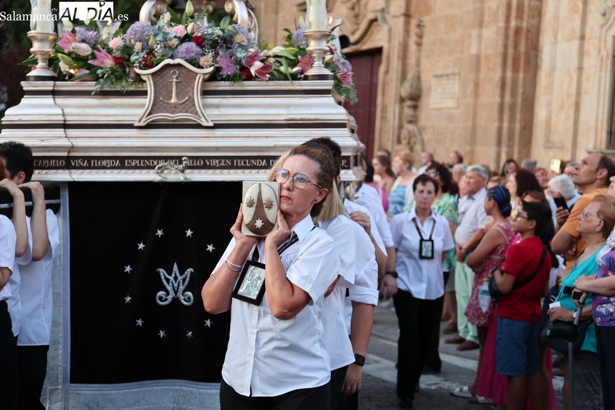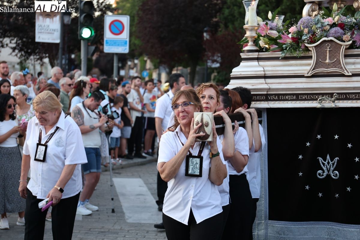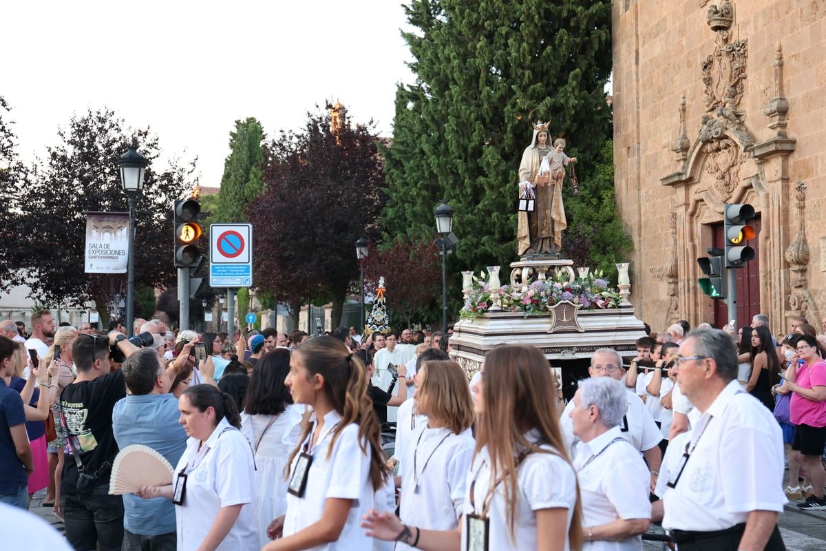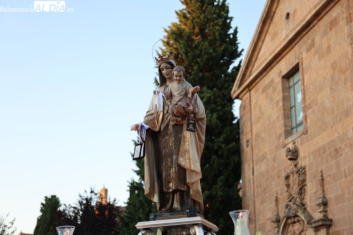 Salamanca ha celebrado en la tarde-noche de este miércoles, 16 de julio, la festividad de la Virgen del Carmen con la tradicional procesión de la imagen del Carmen de Abajo. Organizada por la Cofradía de la Oración de Jesús en el Huerto de los Olivos y los Carmelitas del Carmen de Abajo, el desfile procesional ha partido desde la iglesia del Carmen de Abajo, en la calle Arroyo de Santo Domingo.