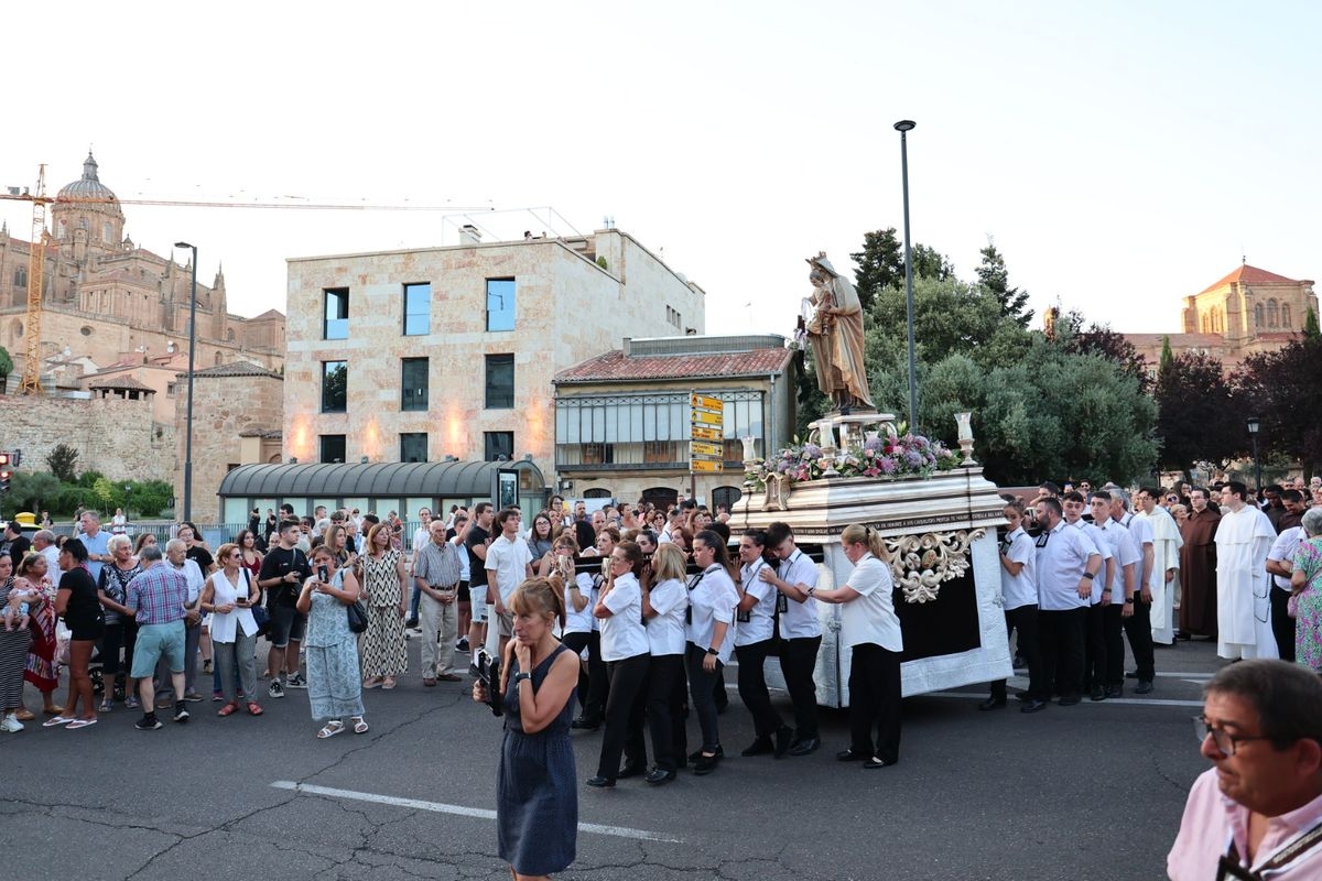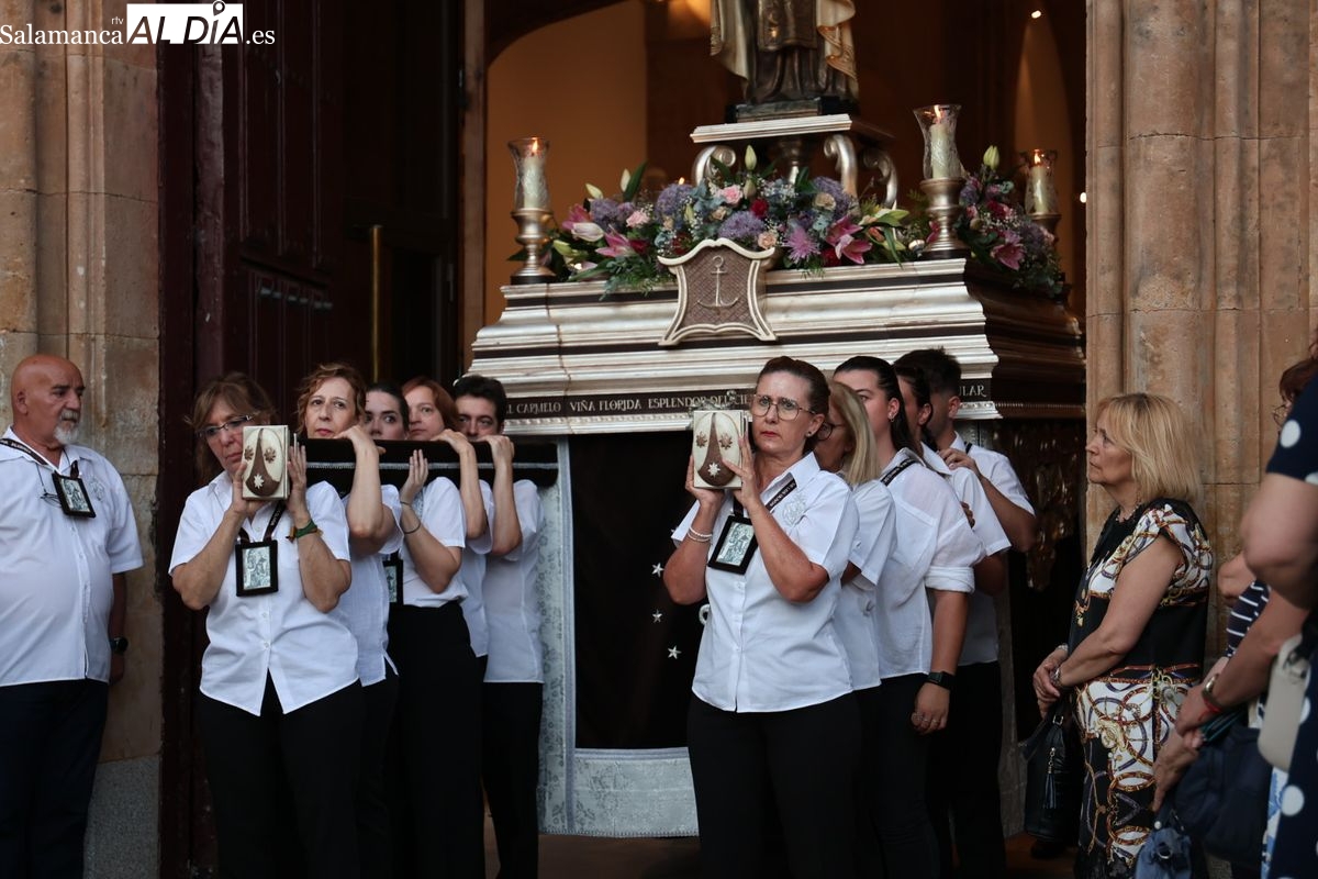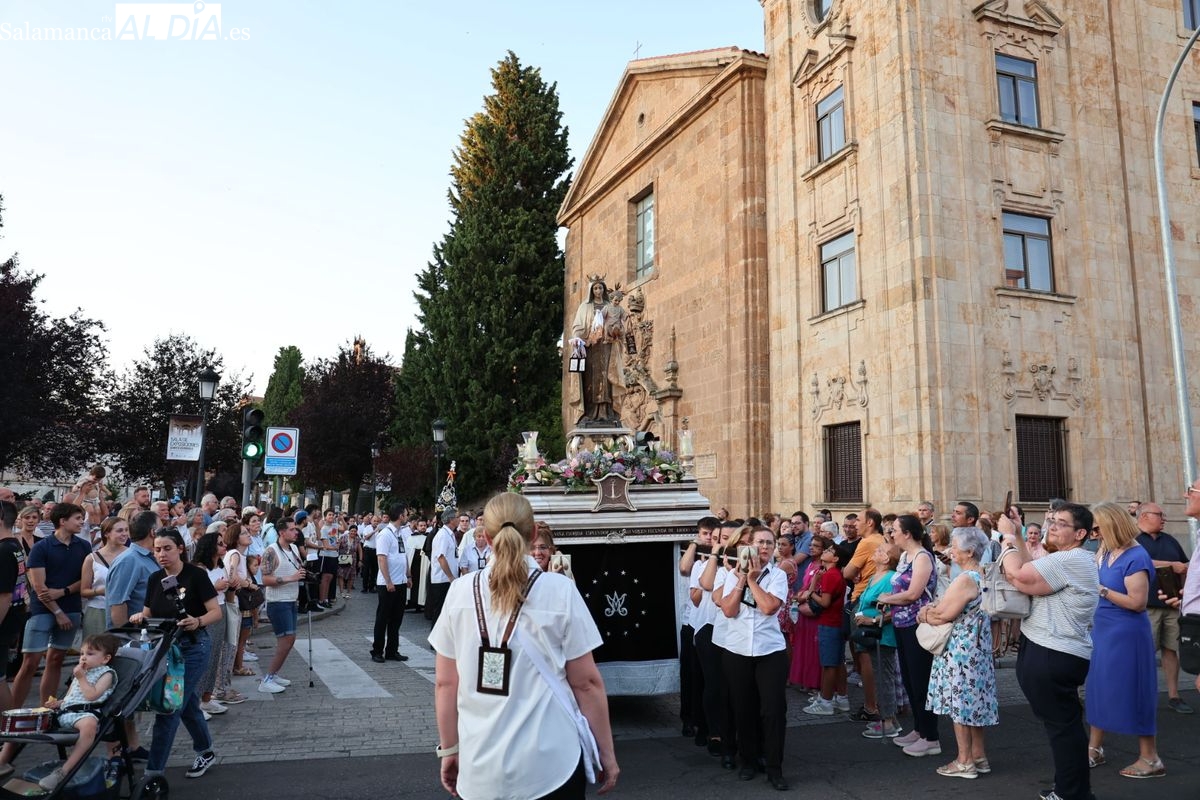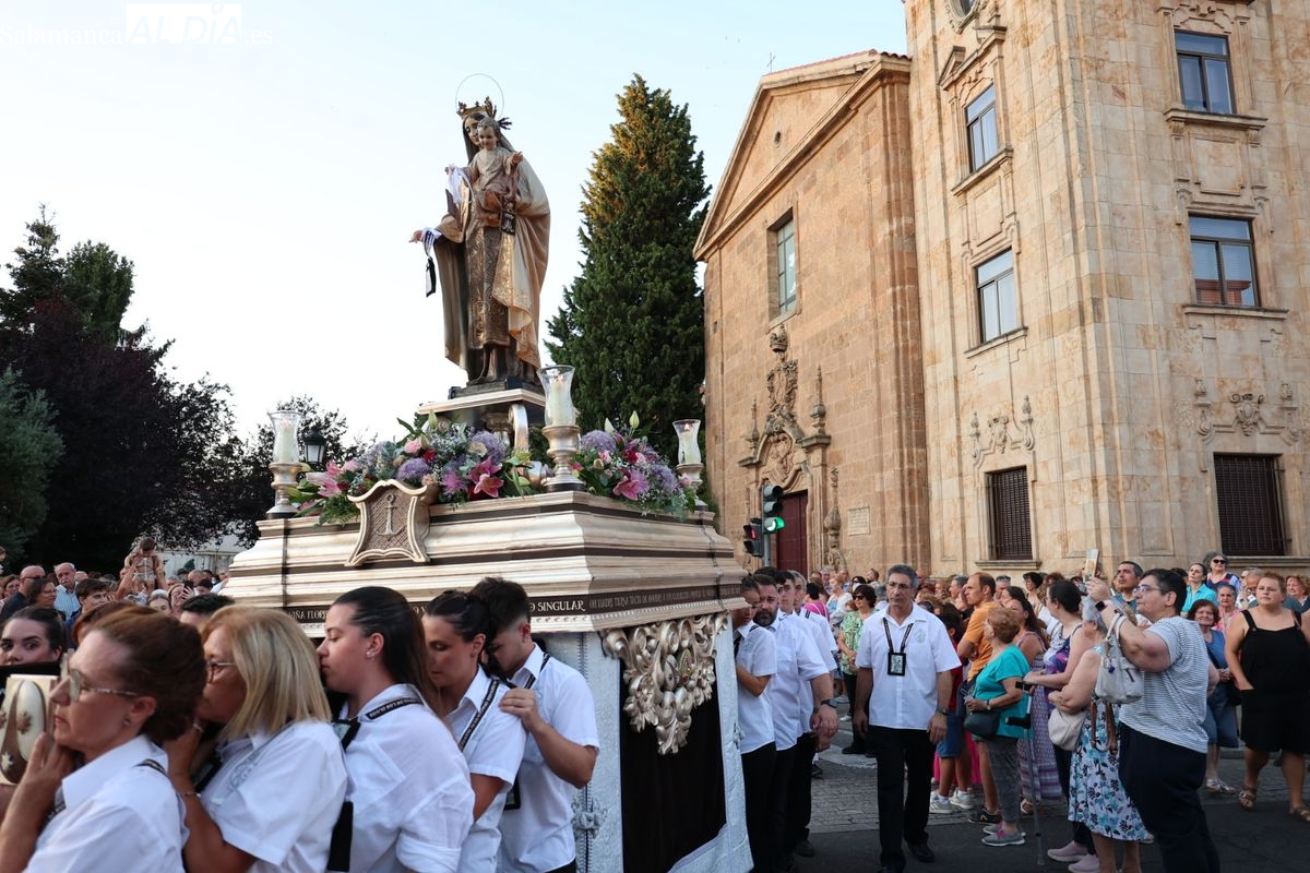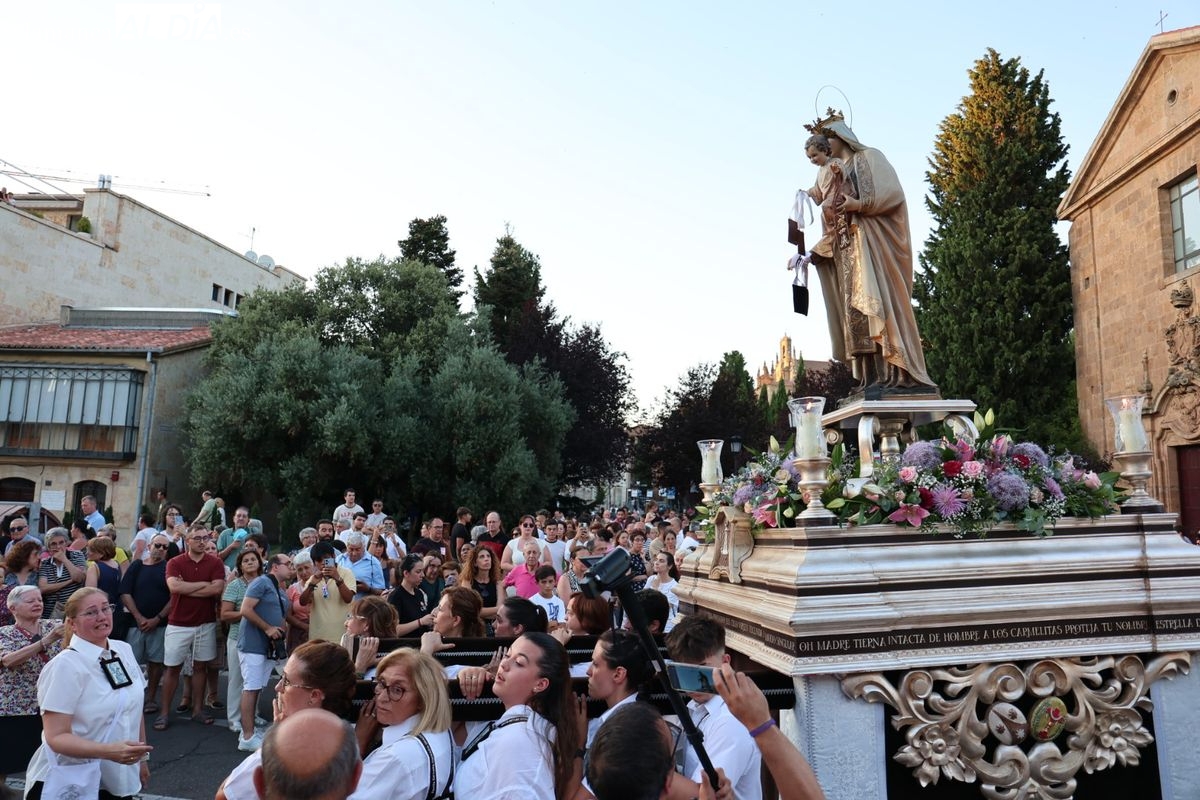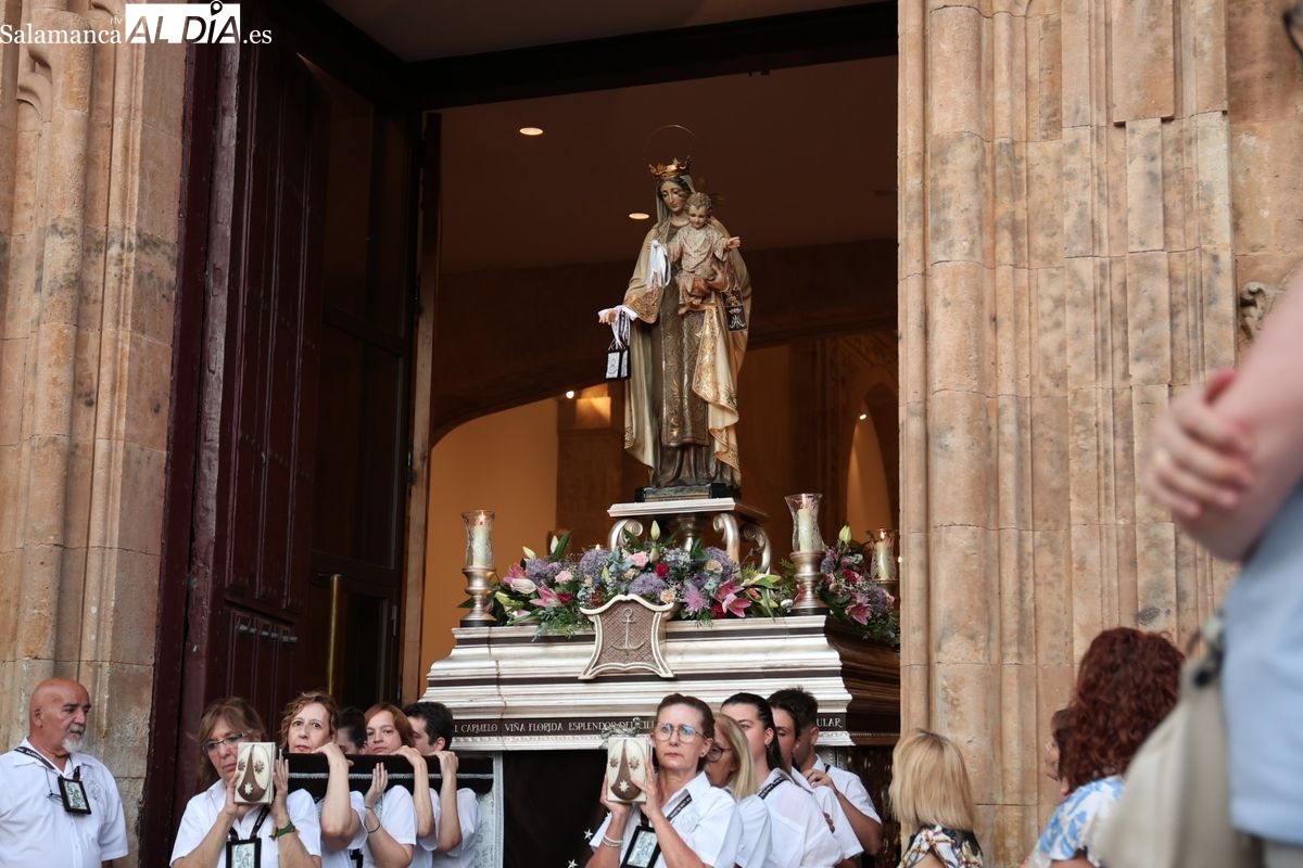 Salamanca ha celebrado en la tarde-noche de este miércoles, 16 de julio, la festividad de la Virgen del Carmen con la tradicional procesión de la imagen del Carmen de Abajo. Organizada por la Cofradía de la Oración de Jesús en el Huerto de los Olivos y los Carmelitas del Carmen de Abajo, el desfile procesional ha partido desde la iglesia del Carmen de Abajo, en la calle Arroyo de Santo Domingo.