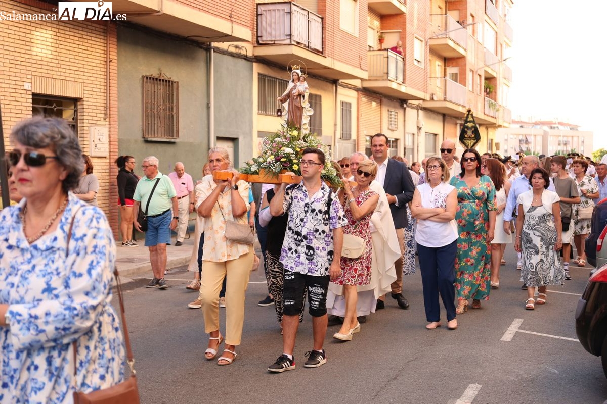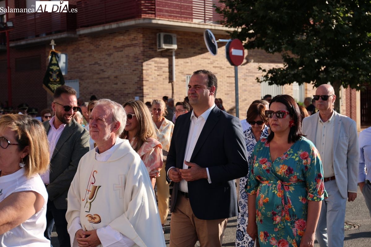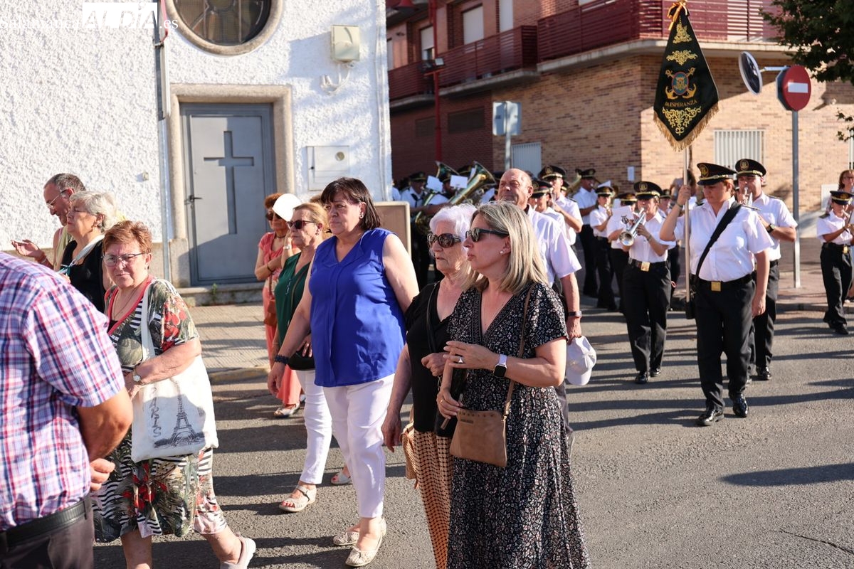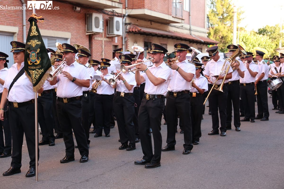 A continuación, la imagen de la Virgen ha salido en procesión por las calles San José, Doña Eloya, Juan XXIII, Ctra. Madrid y Pablo Iglesias. El desfile religioso ha estado acompañado en todo momento por las marchas interpretadas por la Agrupación Musical La Esperanza.