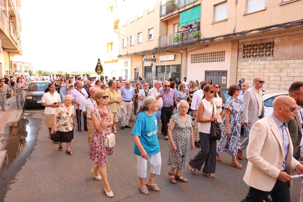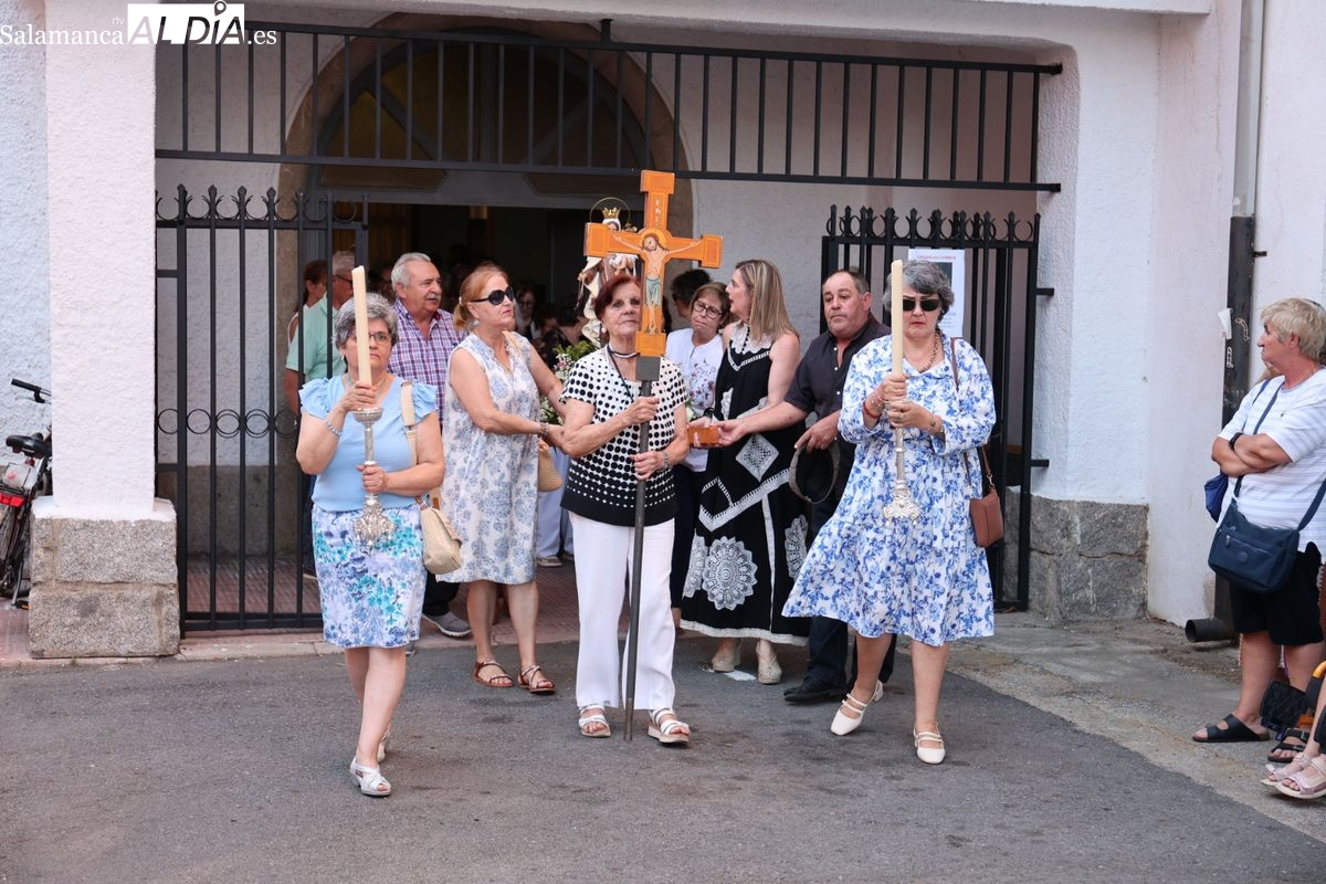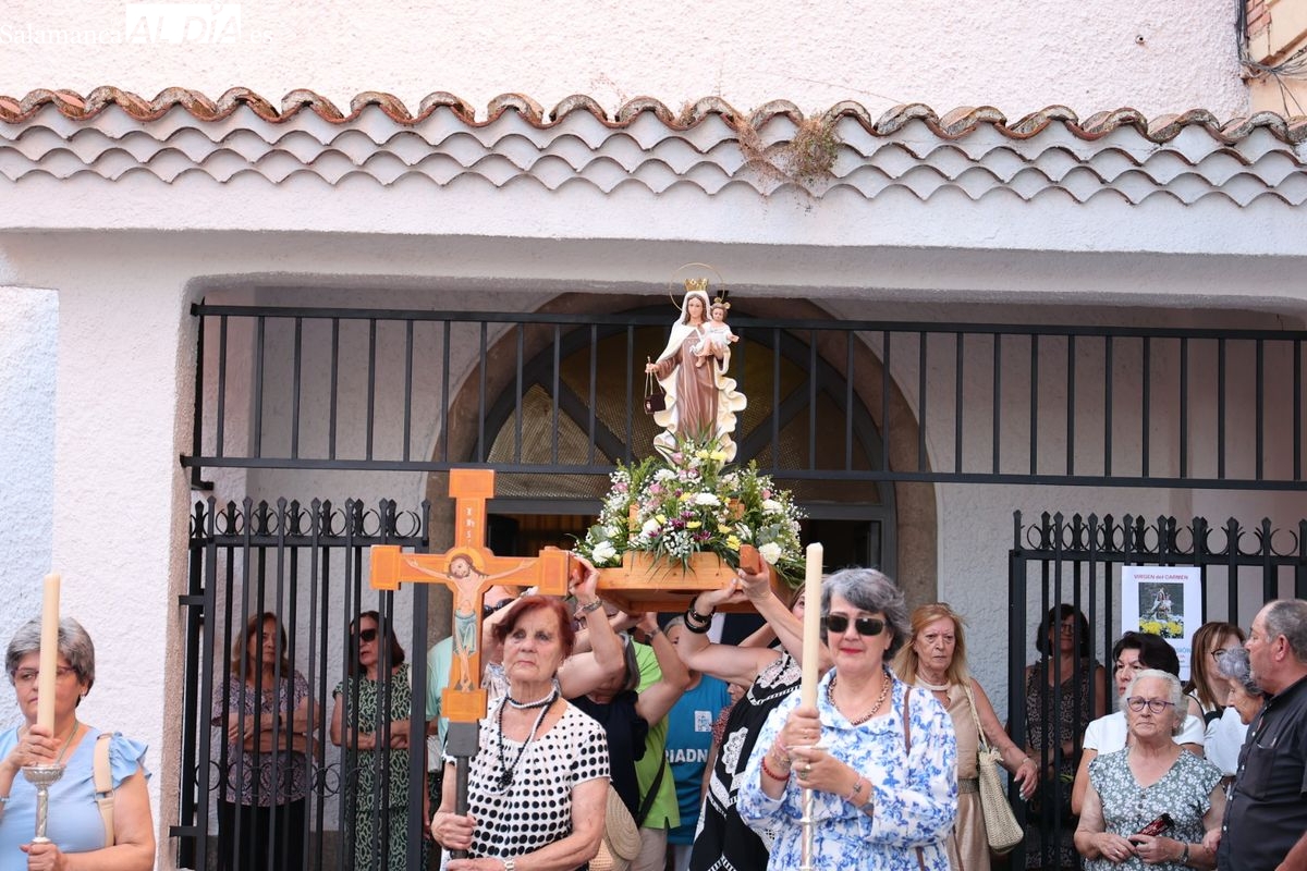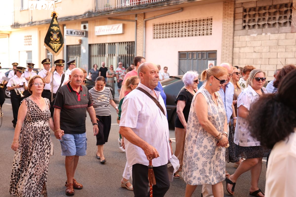 A continuación, la imagen de la Virgen ha salido en procesión por las calles San José, Doña Eloya, Juan XXIII, Ctra. Madrid y Pablo Iglesias. El desfile religioso ha estado acompañado en todo momento por las marchas interpretadas por la Agrupación Musical La Esperanza.