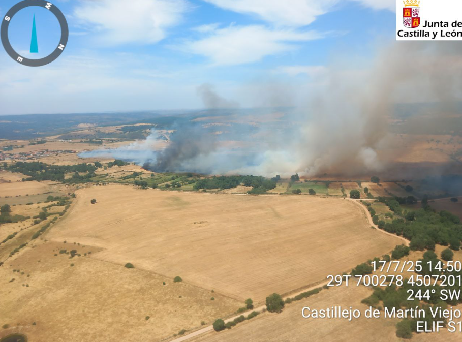 En el momento de publicarse esta información se encuentra activo un amplísimo operativo para intentar apagar un incendio forestal declarado dentro del término municipal de Castillejo de Martín Viejo (no demasiado lejos del núcleo urbano de la localidad), cuyo origen se encuentra bajo investigación.
