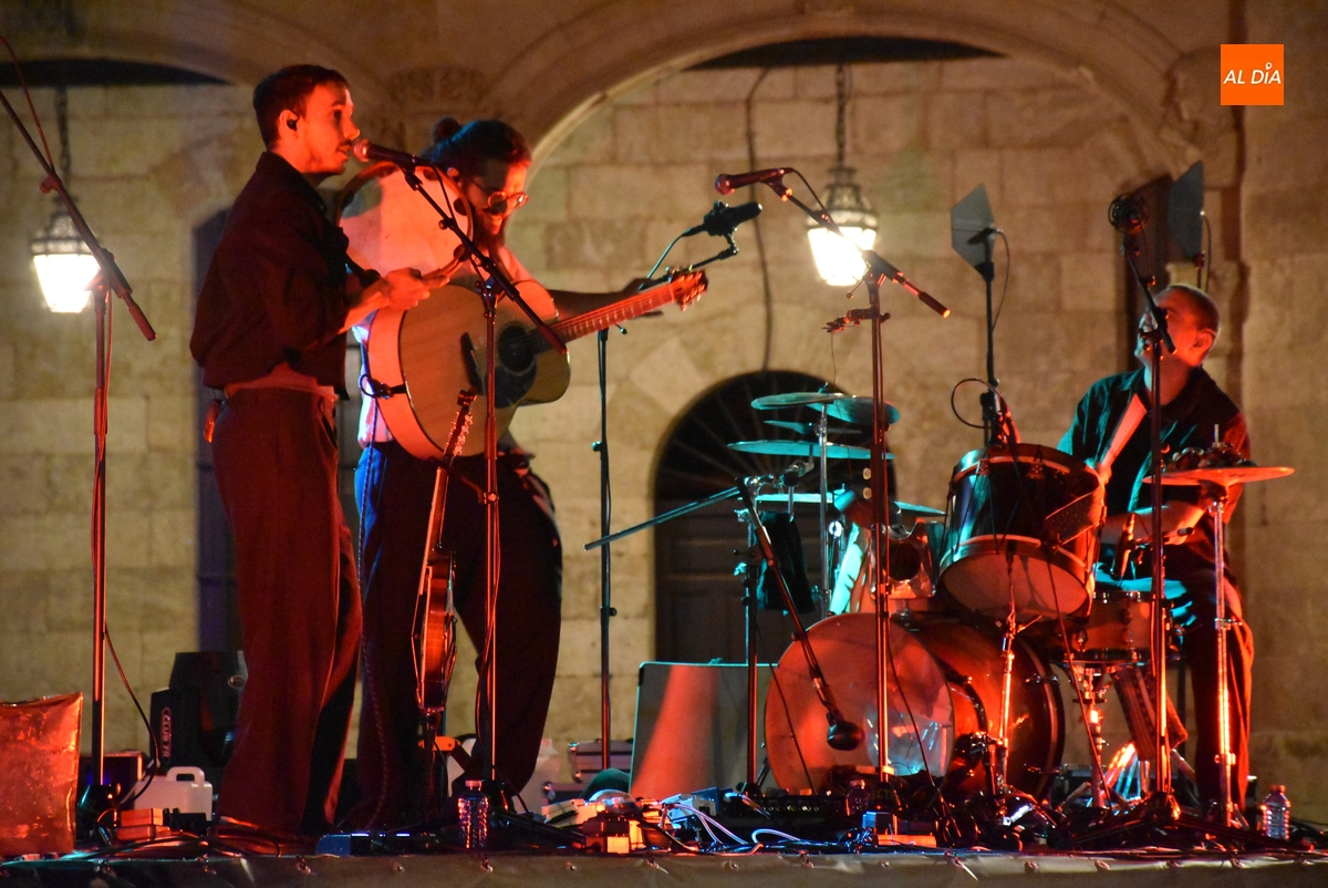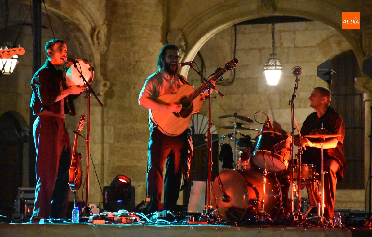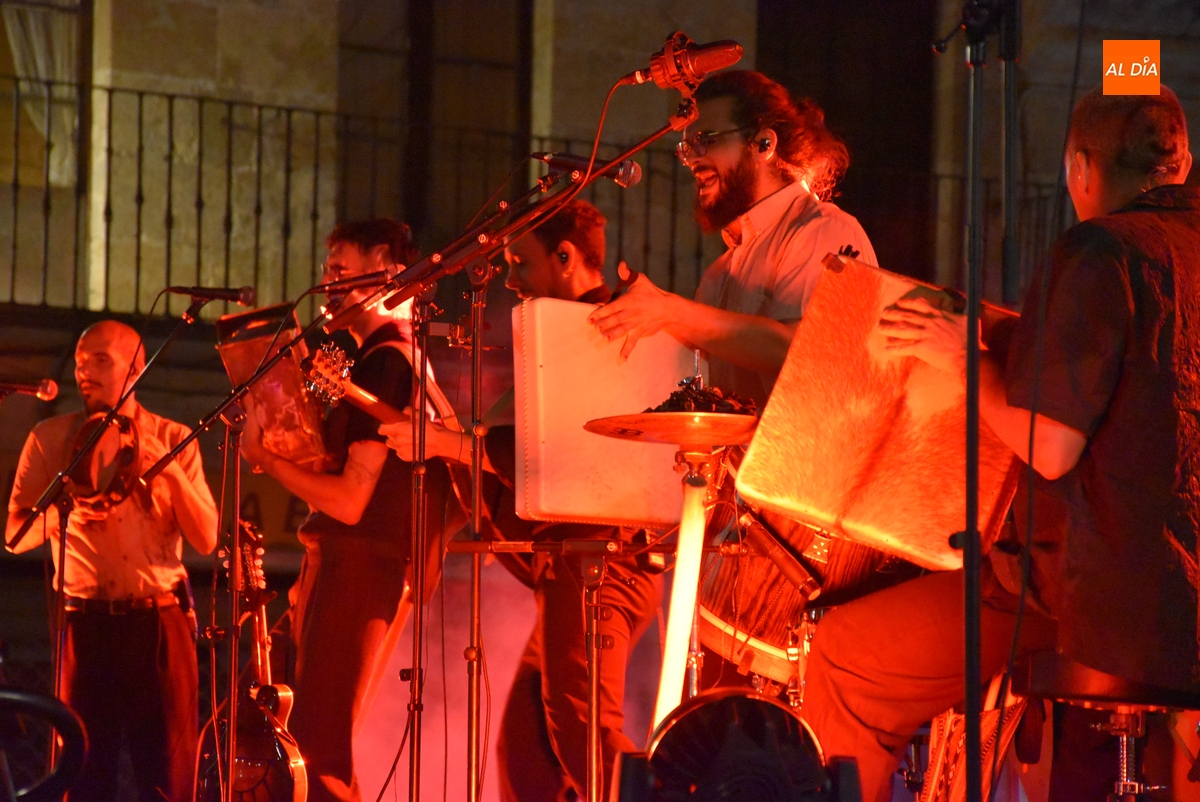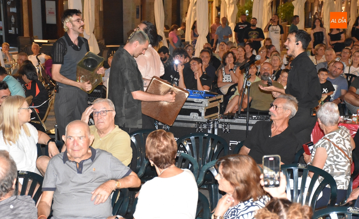 Por cierto, que entre los instrumentos que emplearon en ese tema a pie de Plaza hubo un par de panderos cuadrados de Peñaparda, que también aparecieron en otros momentos de la actuación sobre el escenario instalado junto a la Casa Consistorial. El Nido cerró su concierto con una jota con la que se arrancaron a bailar algunas espectadoras, todo ello en una noche ciertamente calurosa en Ciudad Rodrigo.