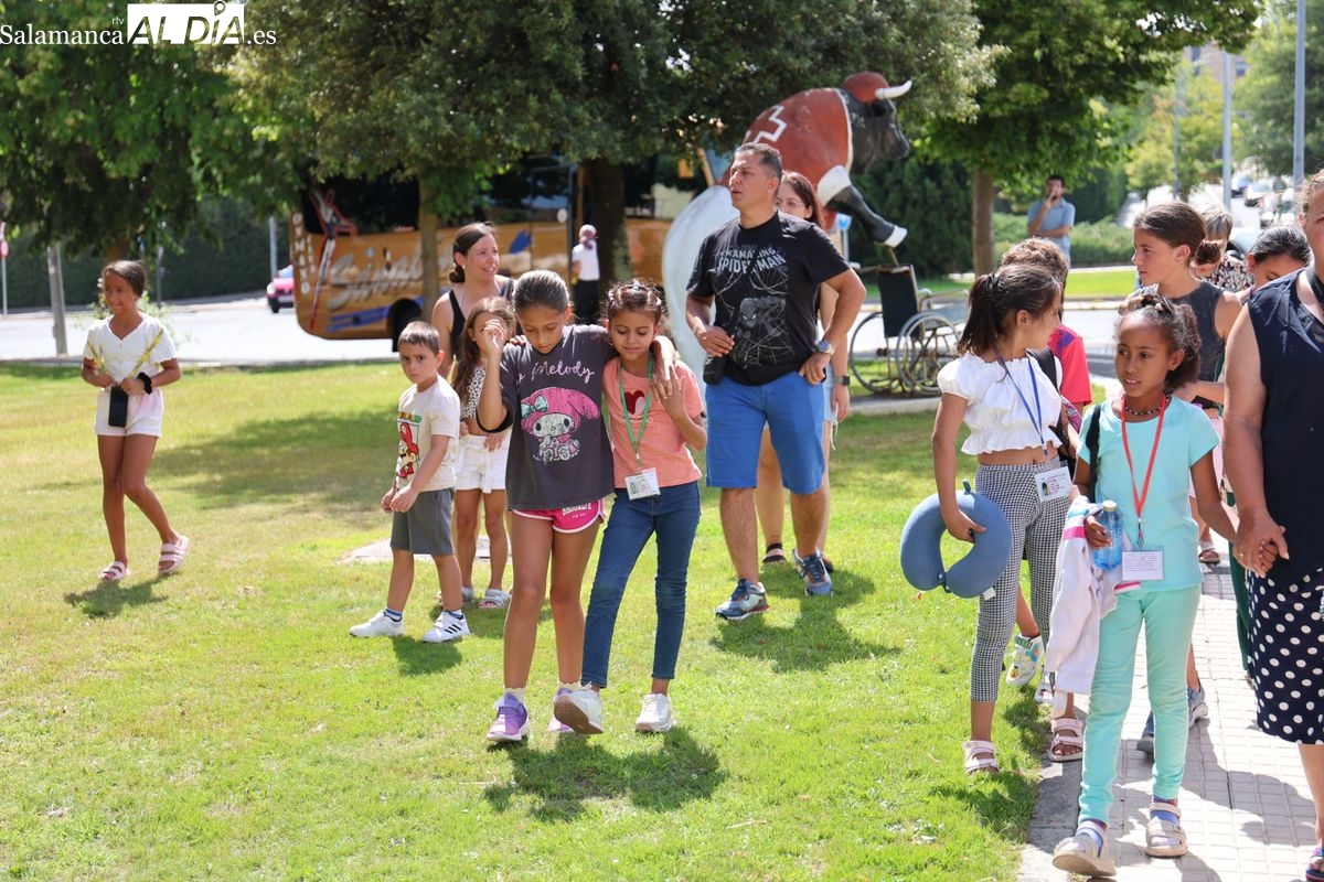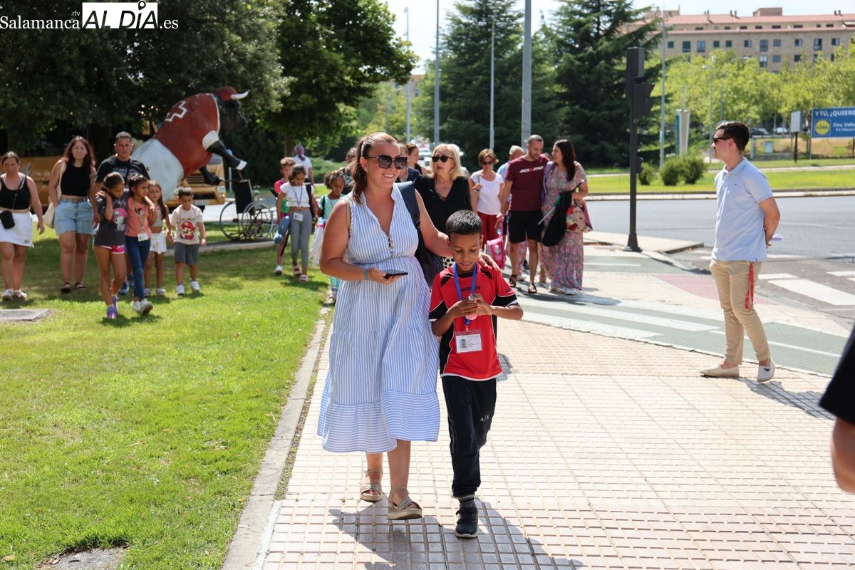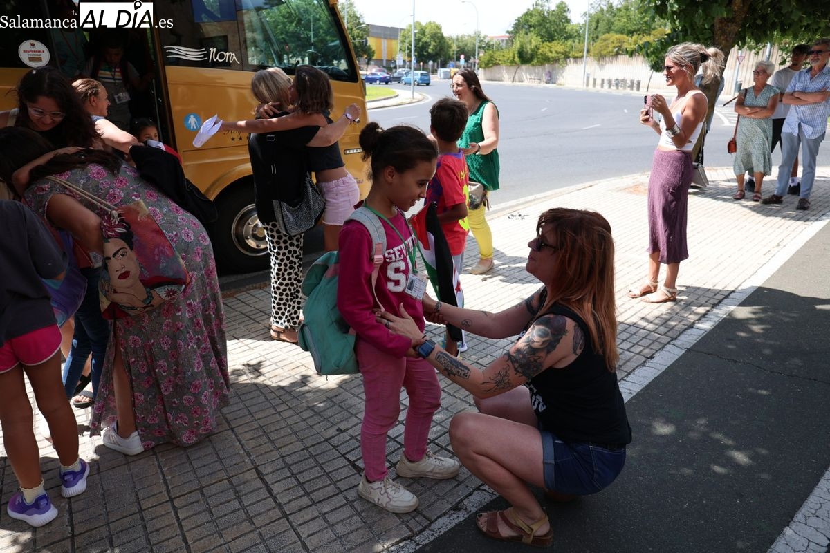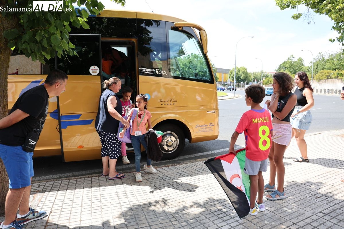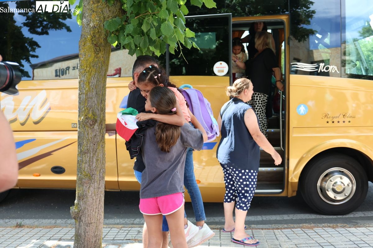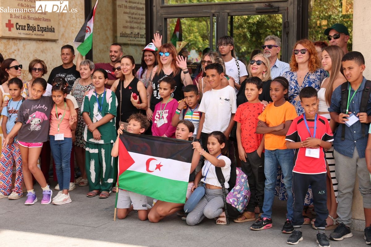 La llegada se ha producido alrededor de las cuatro de la tarde en la sede de Cruz Roja Salamanca. Allí, los niños y niñas, con edades comprendidas entre los 8 y los 12 años, han sido recibidos por sus familias salmantinas y por los responsables de la Asociación de Amigos del Pueblo Saharaui de Salamanca (AMPUSASA), promotora del proyecto.