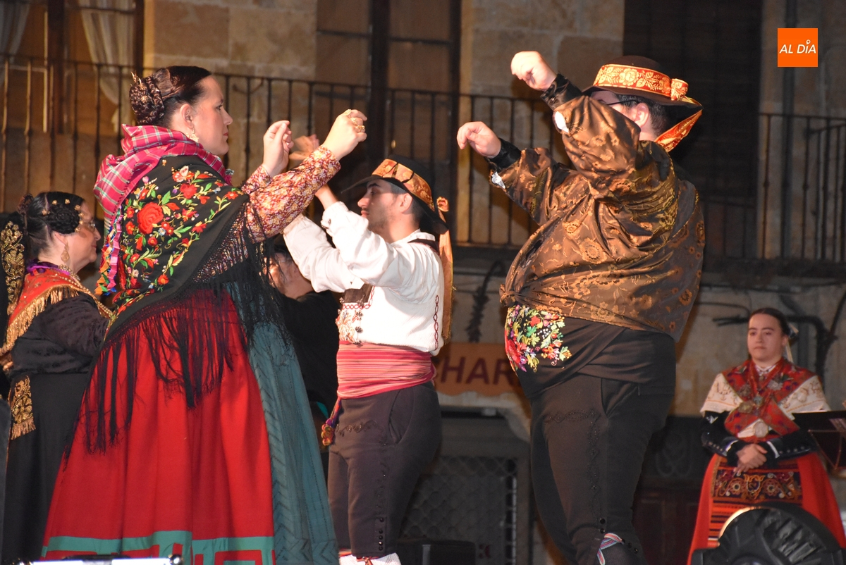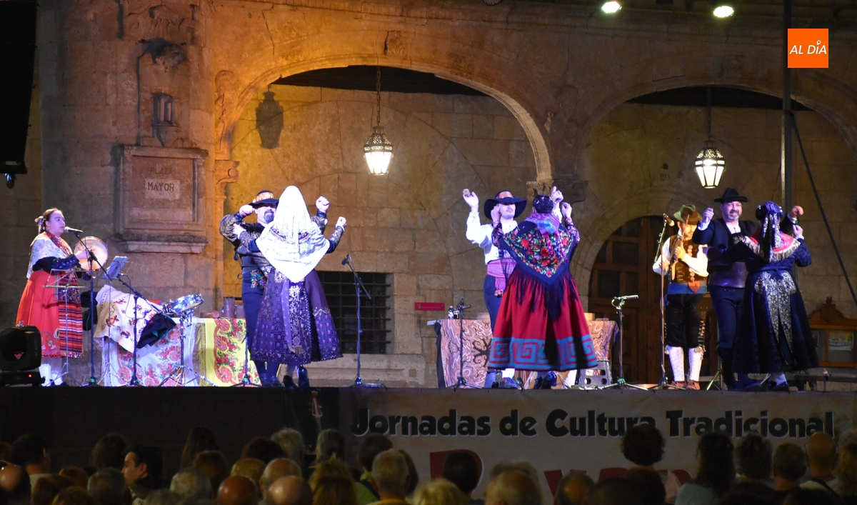La 2ª velada de las Jornadas de Cultura Tradicional Rayana promovidas por el Ayuntamiento de Ciudad Rodrigo estuvo llena de sabor de la tierra, gracias a La Espuela Agrupación Tradicional, colectivo que propuso en plena Plaza Mayor mirobrigense un didáctico recorrido por la provincia de Salamanca.