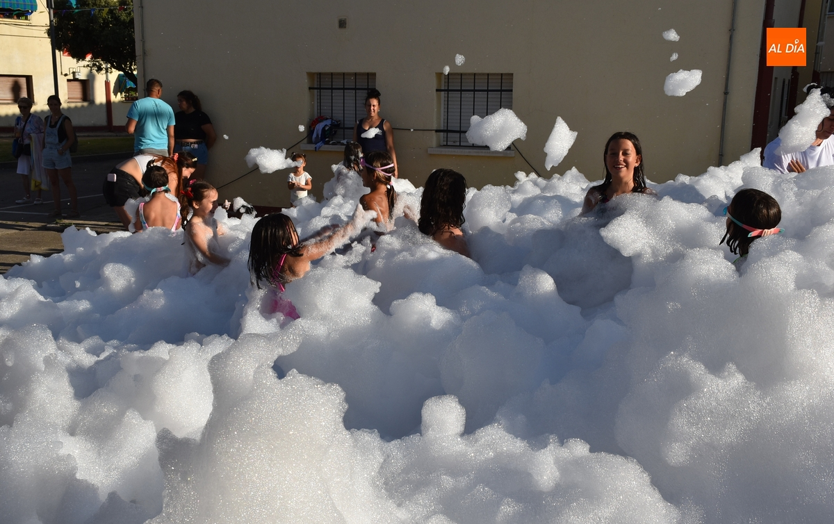 Estas actividades, a cargo de Espectáculos Vibrass, consistieron por un lado en un hinchable acuático de grandes dimensiones, en el que estuvieron continuamente montándose y tirándose hasta una zona con agua; y por otro lado, en una amplia fiesta de la espuma, que revoloteó más de lo habitual producto del viento.