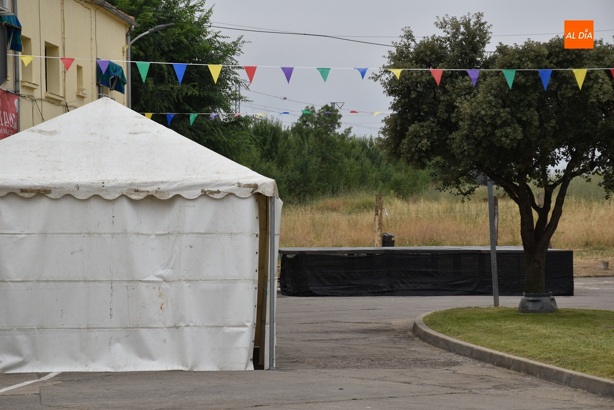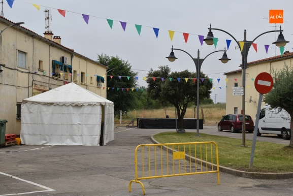 Al respecto, como se puede ver en las imágenes, ya están montados el escenario y una carpa con una barra de bar en su interior, y el barrio se ha engalanado con banderines, incluido en su entrada y al otro lado de la Carretera de Lumbrales, en la zona de las Casas de Martín Báez. Como añadido, operarios de Jardinería del Ayuntamiento estuvieron adecentando a primera hora de la mañana del viernes los parterres de la entrada al barrio de las Ranas.