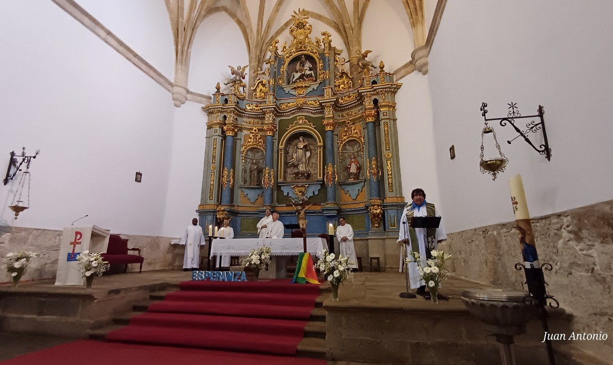 La mañana comenzó en la Ermita del Cristo de la Exaltación, con una oración de bienvenida y una reflexión a cargo del Obispo José Luis Retana. Tras un acto de penitencia, se puso en marcha la habitual peregrinación de estas celebraciones (simbolizando que los participantes son ‘Peregrinos de la Esperanza’, lema del Jubileo), en este caso hasta la Iglesia Parroquial del Apóstol Santiago, donde se ofició una solemne eucaristía.