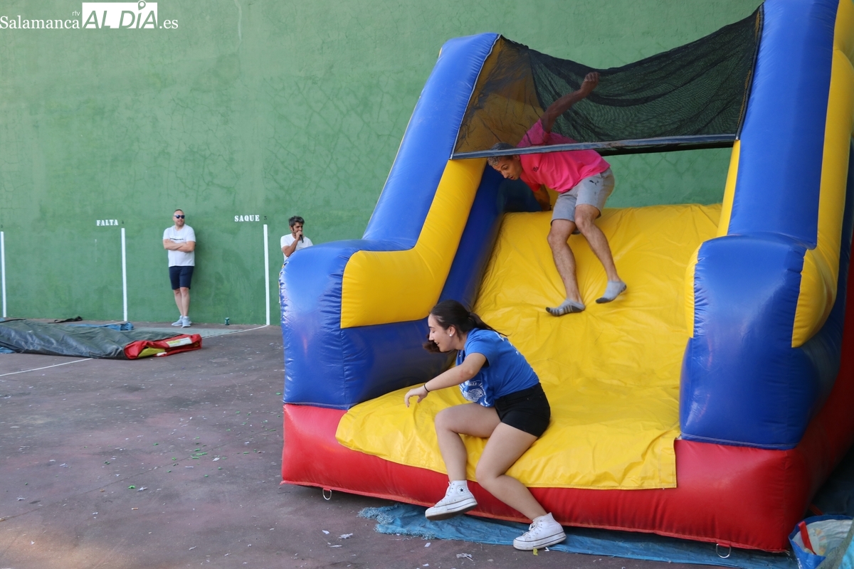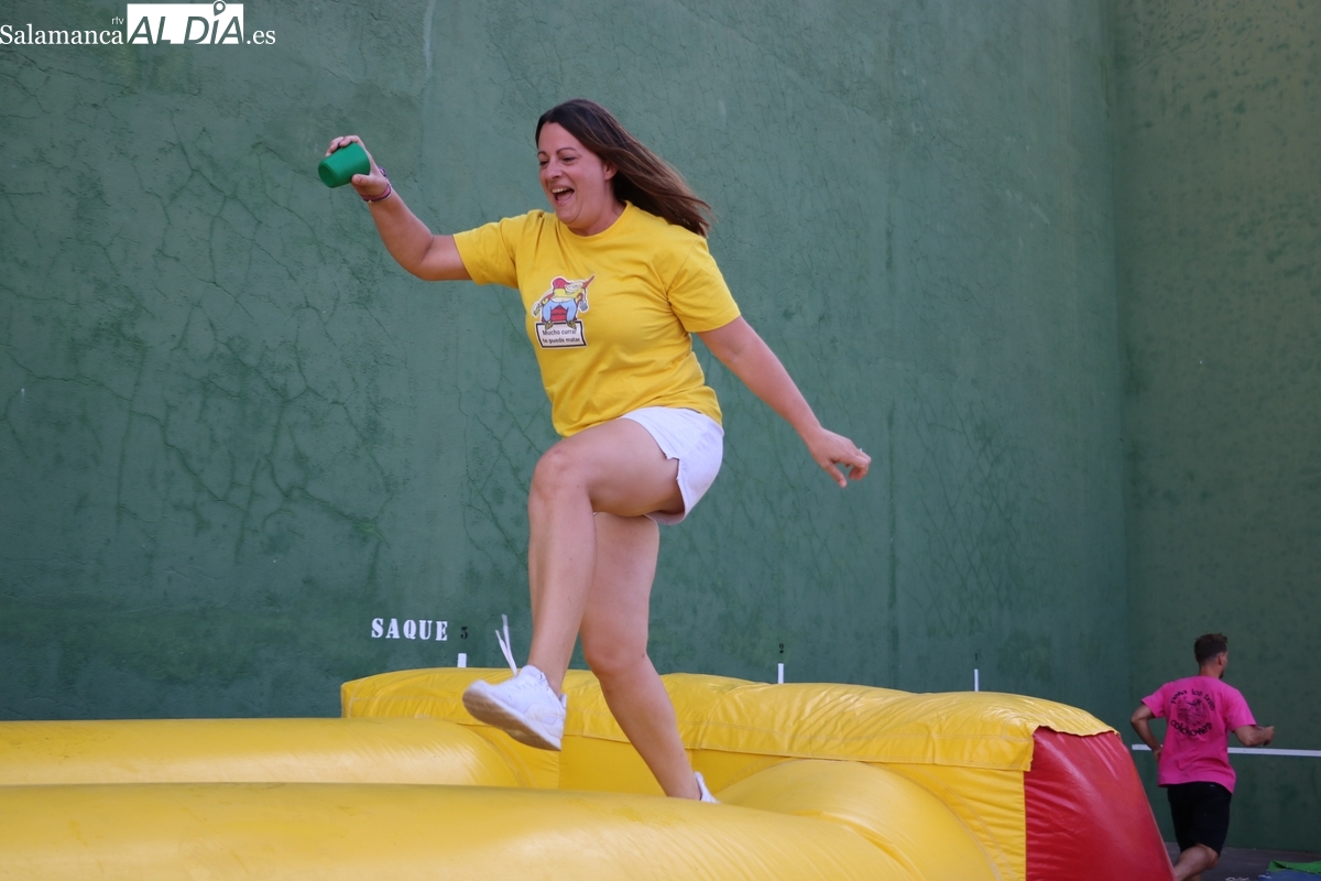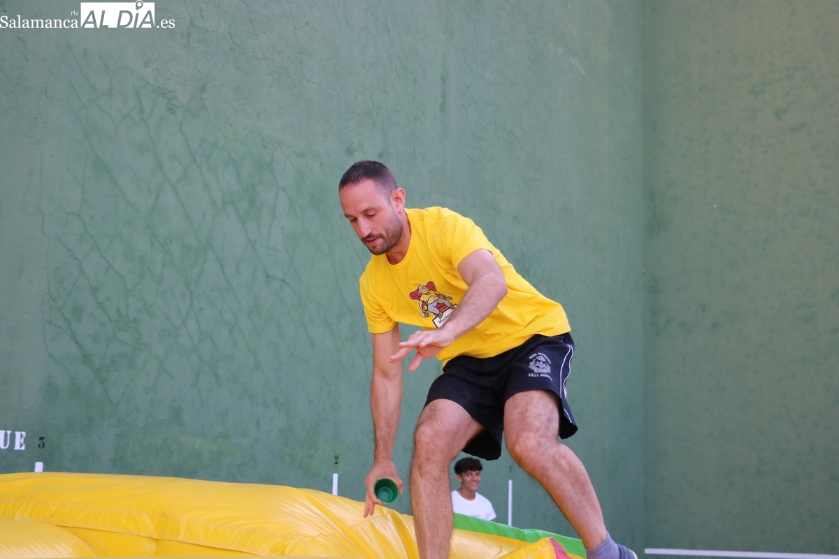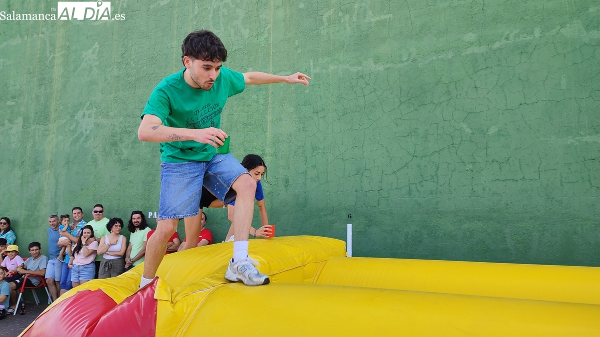 La jornada de este sábado en las fiestas de Santa Marina de Villasbuenas ha tenido un protagonista indiscutible: el Gran Prix de Peñas. Organizado por Encierros Infantiles Huertos, el evento congregó a un numeroso público de todas las edades en el frontón de pelota, que se convirtió en un hervidero de risas y buen ambiente.