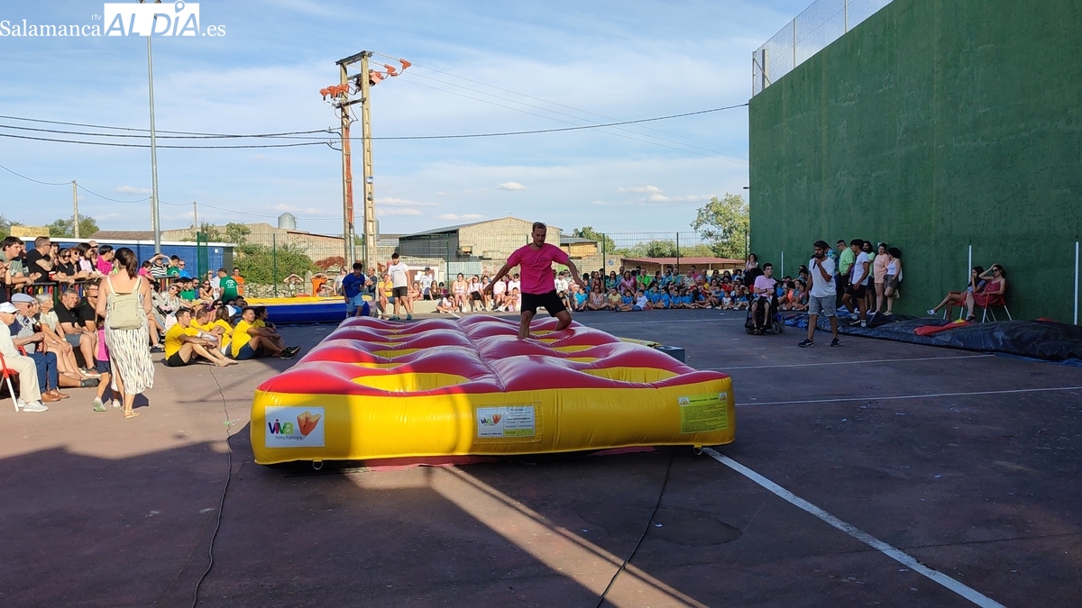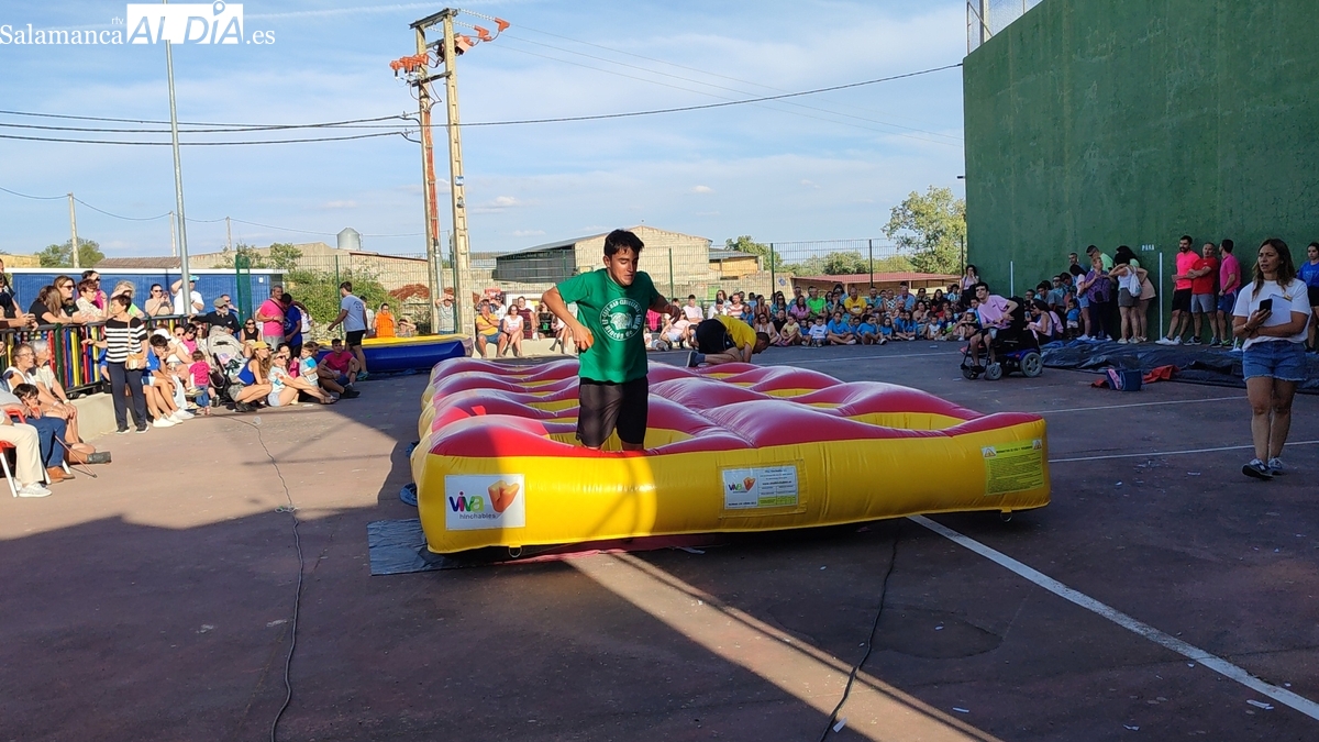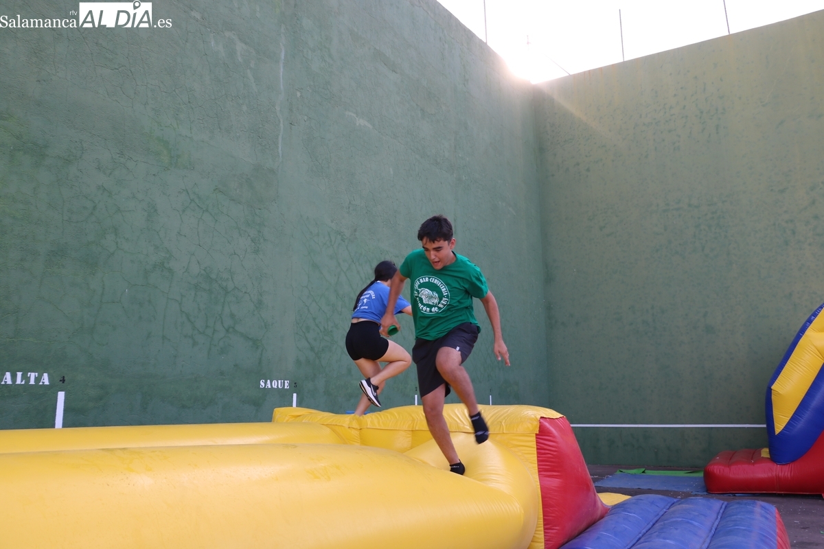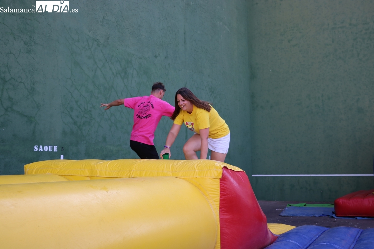 La jornada de este sábado en las fiestas de Santa Marina de Villasbuenas ha tenido un protagonista indiscutible: el Gran Prix de Peñas. Organizado por Encierros Infantiles Huertos, el evento congregó a un numeroso público de todas las edades en el frontón de pelota, que se convirtió en un hervidero de risas y buen ambiente.