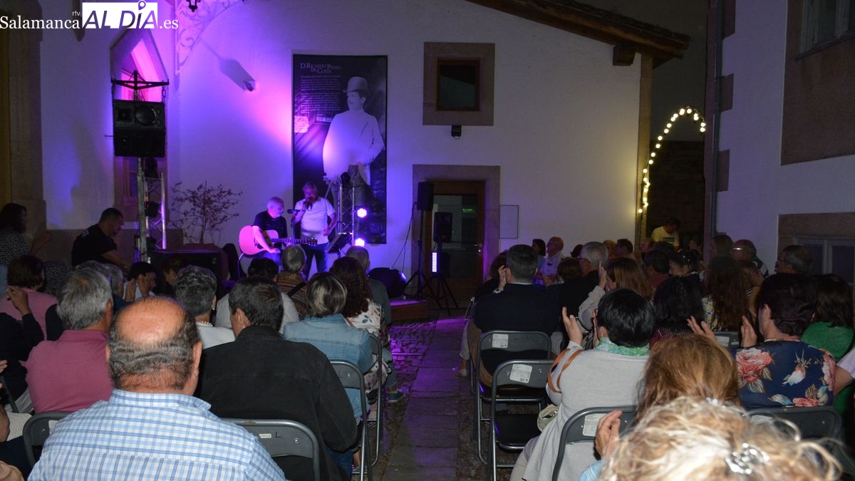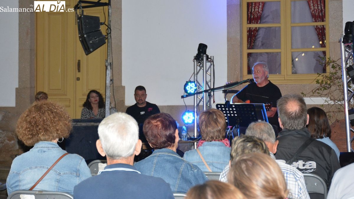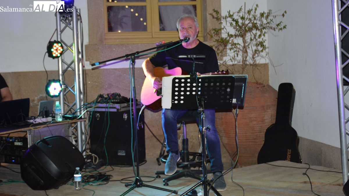 Las canciones de Joaquín Sabina, Los Secretos, Ana Belén, Maná, Luz Casal .... interpretadas con la guitarra y la voz de Mundi llenaron de música y emoción el patio de la Casa de los Condes de Lumbrales, la noche de ayer sábado. Este espacio llenó su aforo de público (hubo que hacer cola para entrar en el recinto) para asistir a la segunda de las veladas musicales del mes de julio, organizadas por la concejalía de cultura del Ayuntamiento de Lumbrales.