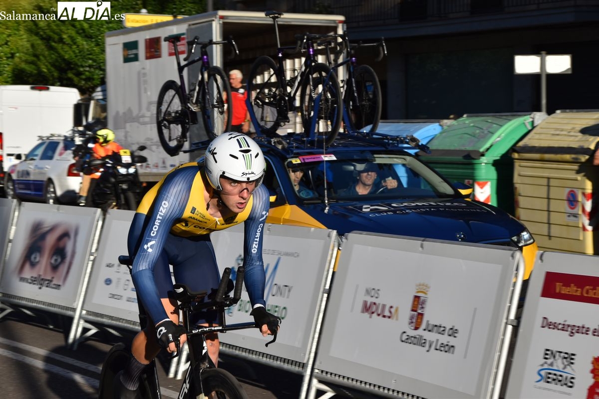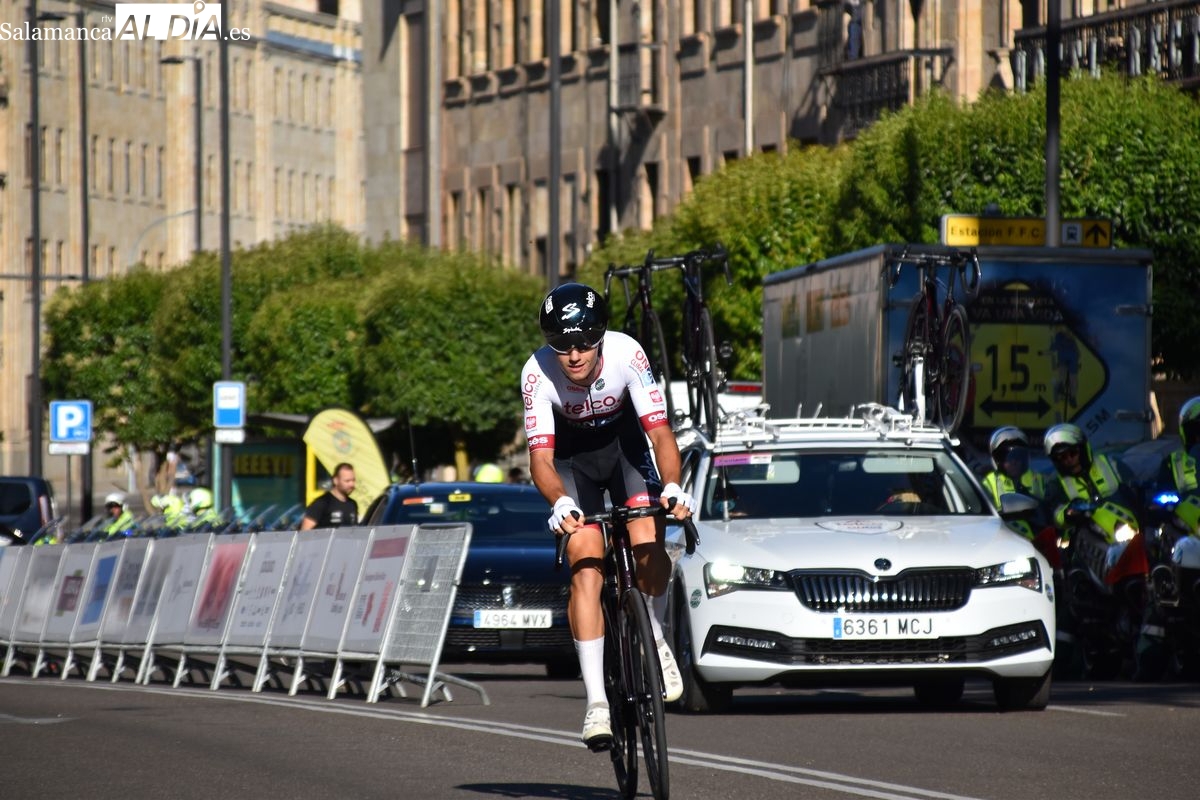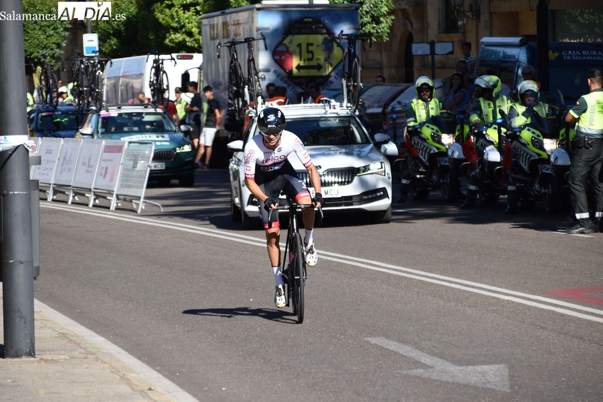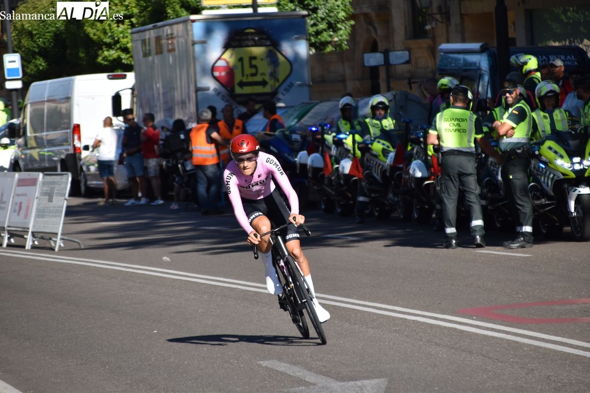 La primera etapa ha consistido en una contrarreloj individual de 3,8 kilómetros que ha recorrido íntegramente las calles de Salamanca.