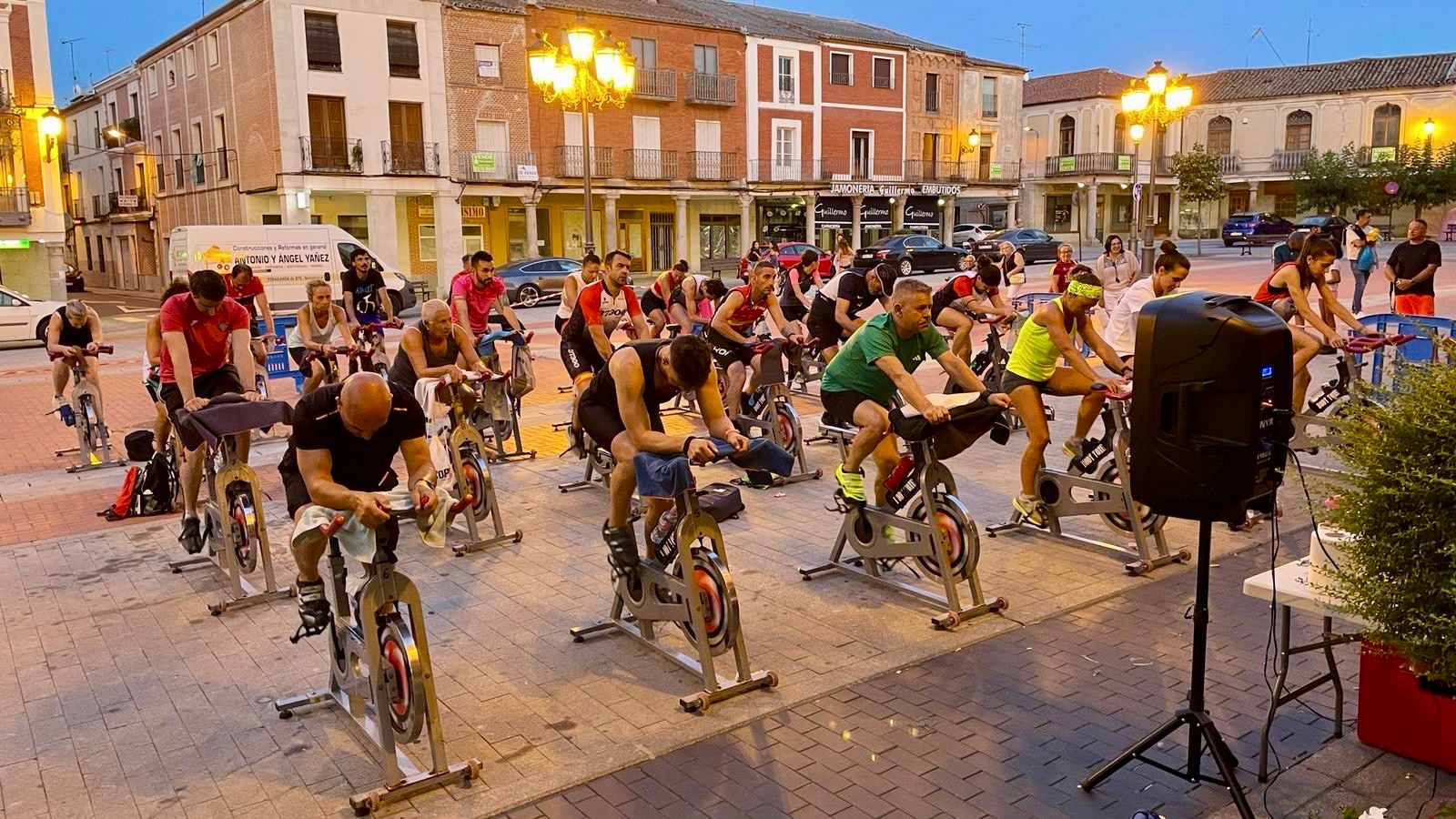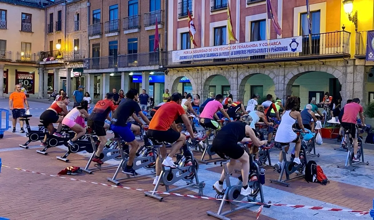 La actividad socio deportiva de spinning solidario celebrada el pasado viernes en la Plaza de la Constitución de Peñaranda ha concluido con un nuevo éxito en la recaudación de alimentos no perecederos y productos de higiene, destinados íntegramente al banco de alimentos municipal. La iniciativa fue posible gracias al esfuerzo conjunto de dos clubes deportivos locales (club Triatlón 37300 y Club Salandar), una empresa privada (Centro Integral Deportivo, CiD) y el Ayuntamiento de Peñaranda.
