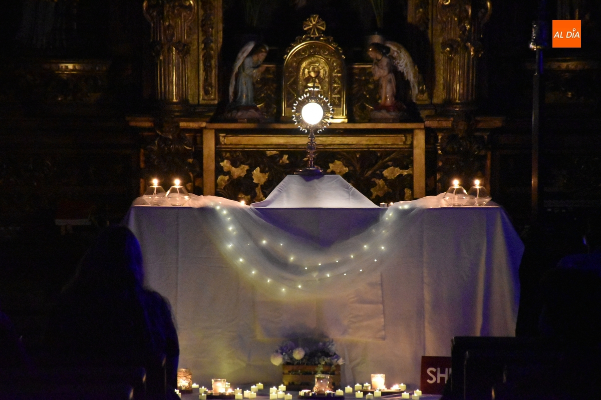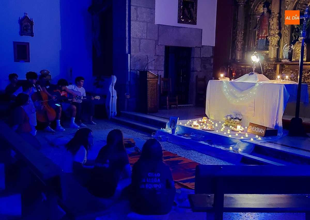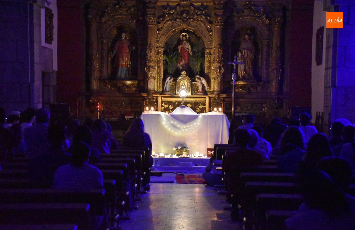 La Iglesia de San Andrés de Ciudad Rodrigo fue escenario en la noche del lunes de la nueva velada de adoración eucarística promovida por Shekinah, el grupo compuesto por hasta 40 jóvenes que viene organizando actividades de forma periódica, además de participar en otras que se llevan a cabo a nivel de Diócesis de Ciudad Rodrigo.