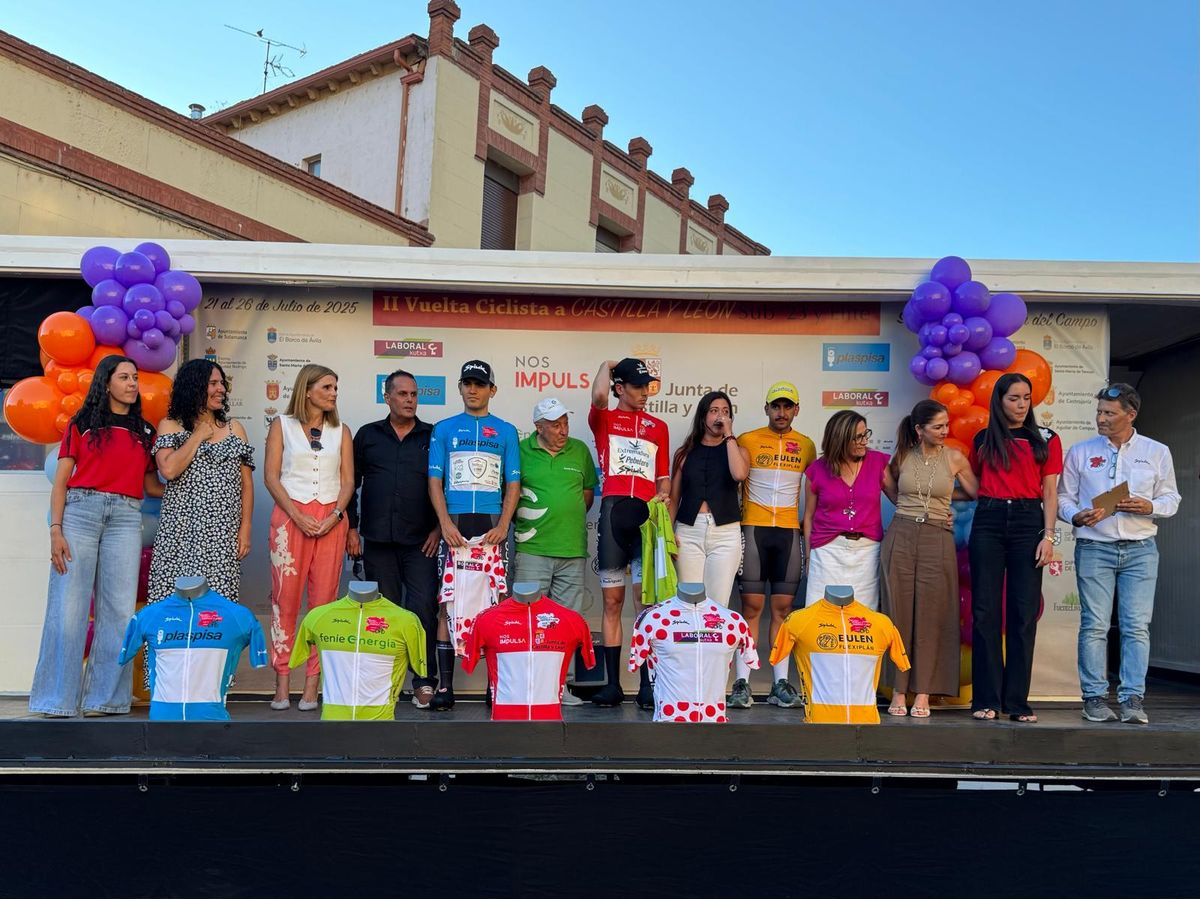 En la ceremonia del pódium se repartieron los distintos maillots SPIUK. José María Martín se enfundó tres de ellos: el rojo de líder ('Castilla y León Nos Impulsa'), el verde de la regularidad ('Fenie Energía') y el de la montaña ('Laboral Kutxa').