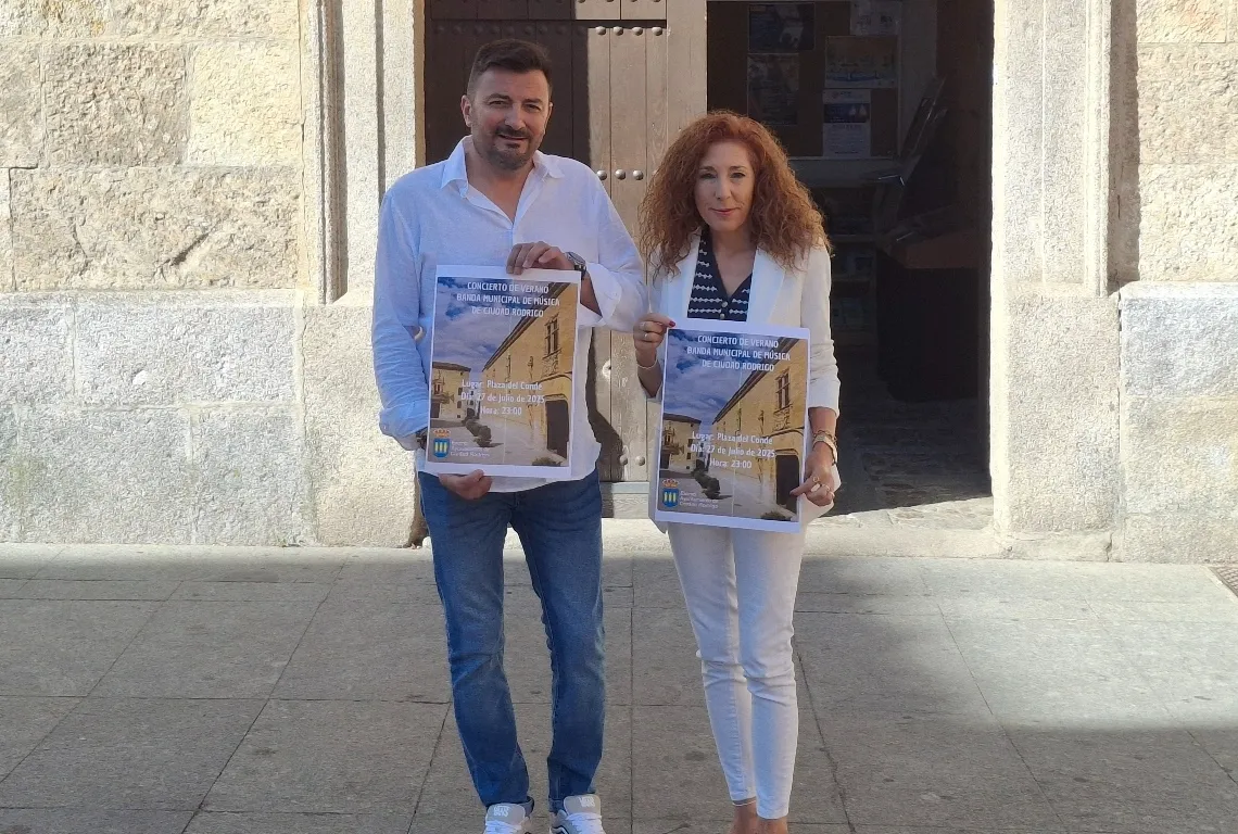 Aunque se conocía desde que se desveló la relación de actividades programadas por el Ayuntamiento para este verano, la Delegación de Cultura ha presentado, sacándose la foto con el cartel del evento, el concierto que ofrecerá la Banda Municipal de Música de Ciudad Rodrigo que dirige José María Sendín a las 23.00 horas del domingo 27 en la Plazuela del Conde.