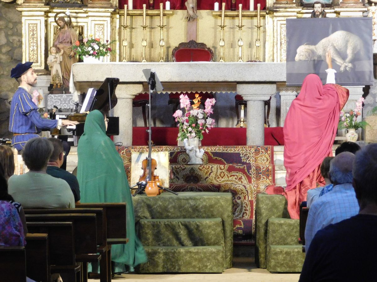 Los tres artistas en escena: Guadalupe Lancho, Jenny Leyva y Juan Francisco Vicente brillaron también de forma especial en un templo tan espléndido y con un público tan entregado entre los que se encontraban varios sacerdotes y algún actor y actriz de talla internacional.
