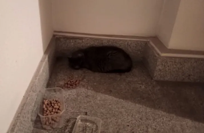El felino, de pelo gris y ojos verdes, se encuentra asustado en el interior del edificio y vecinos piden colaboración para localizar a su familia