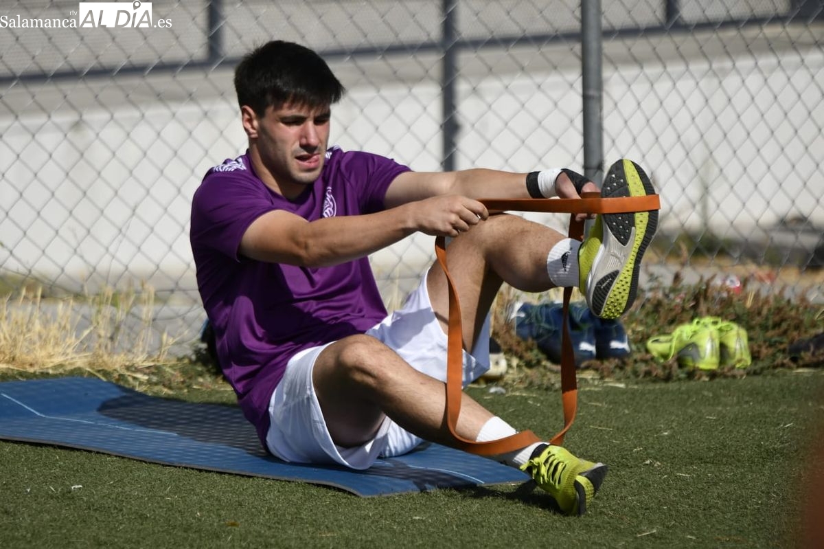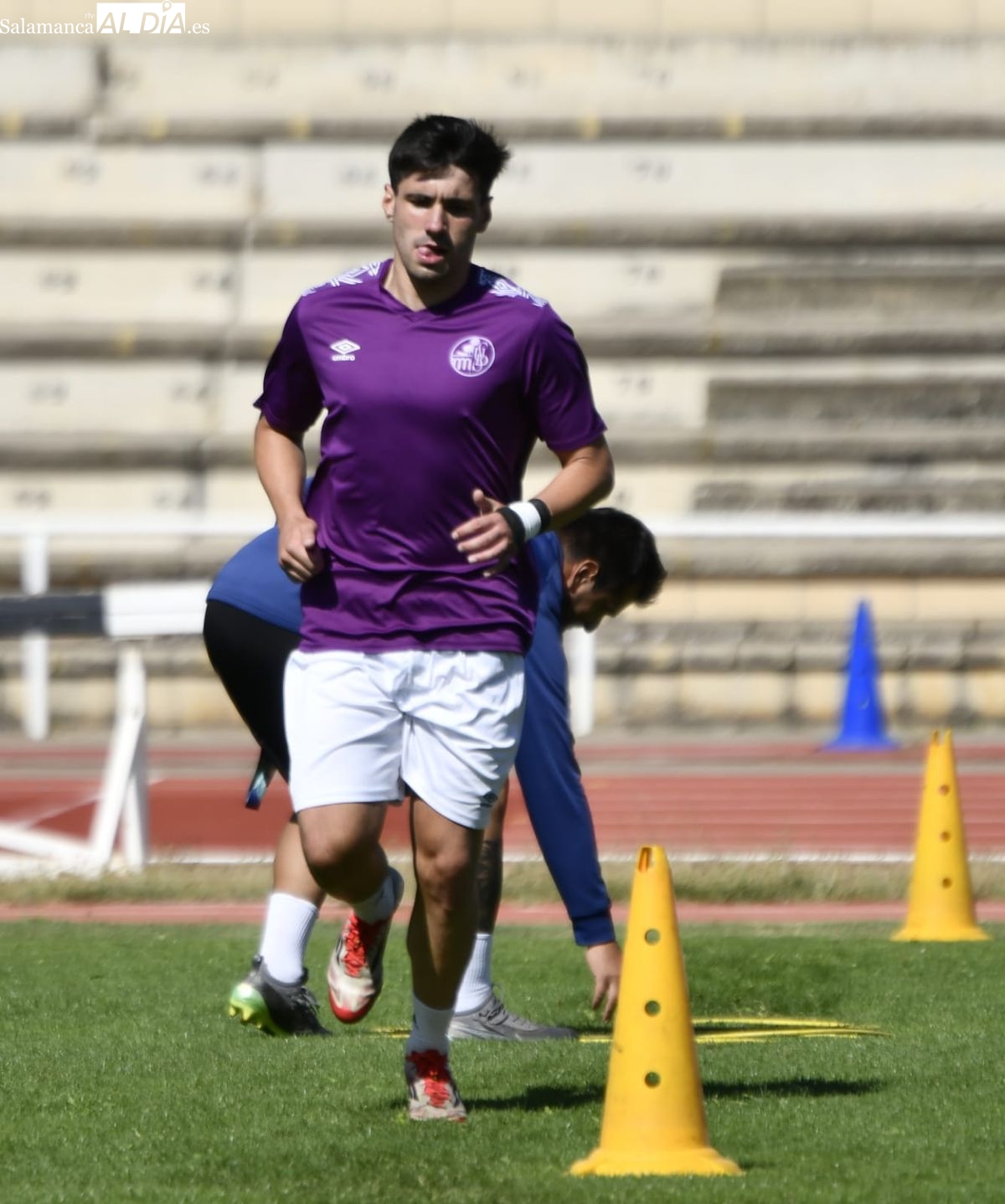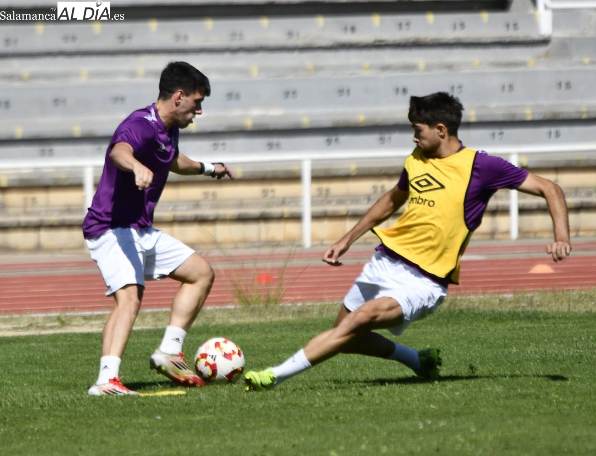 Los focos de la jornada se han centrado en las dos incorporaciones más recientes, que han completado su primer entrenamiento con sus nuevos compañeros. Se trata de Hugo Marcos, lateral que llega al club procedente de la Gimnástica Segoviana, y de Hugo Parra, un mediocentro que refuerza la medular tras su paso por Unionistas de Salamanca.