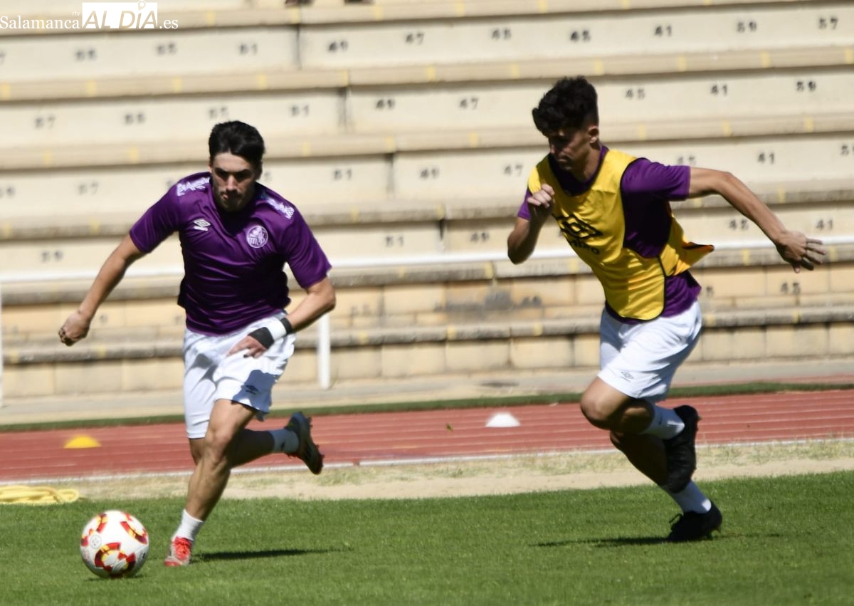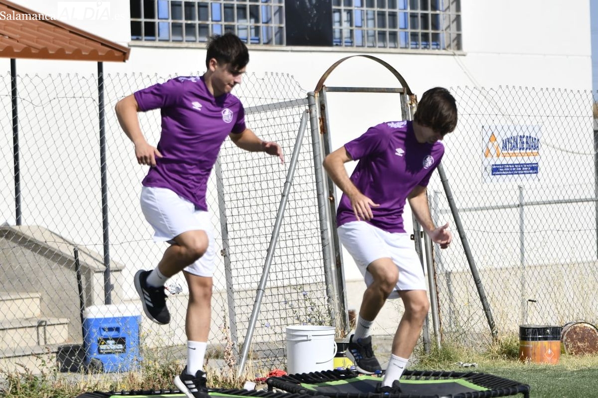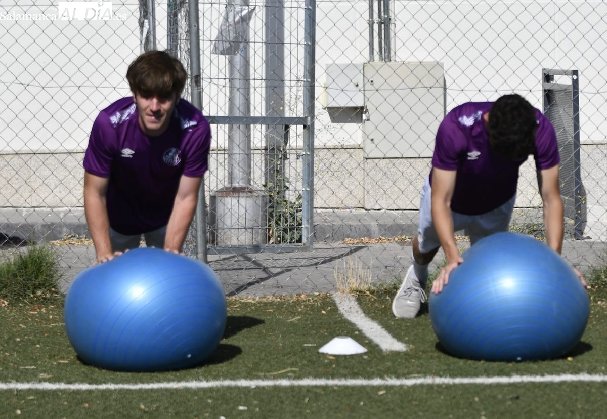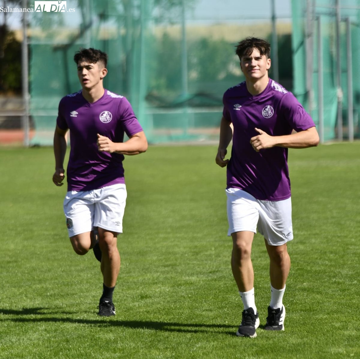 Los focos de la jornada se han centrado en las dos incorporaciones más recientes, que han completado su primer entrenamiento con sus nuevos compañeros. Se trata de Hugo Marcos, lateral que llega al club procedente de la Gimnástica Segoviana, y de Hugo Parra, un mediocentro que refuerza la medular tras su paso por Unionistas de Salamanca.