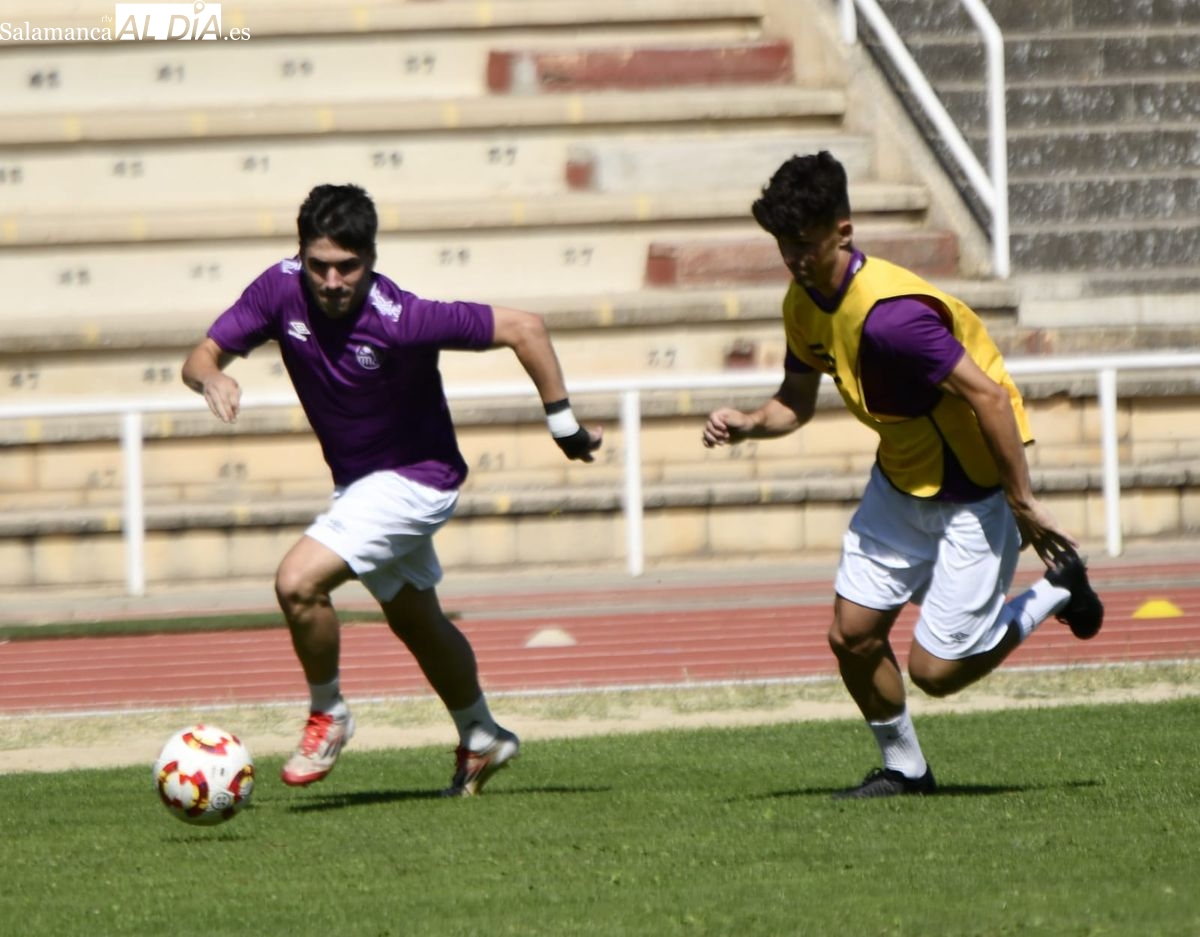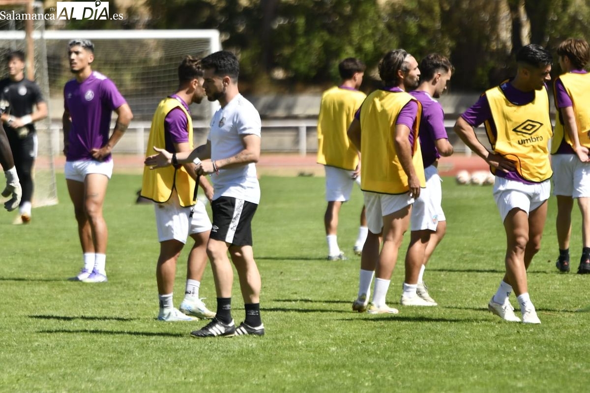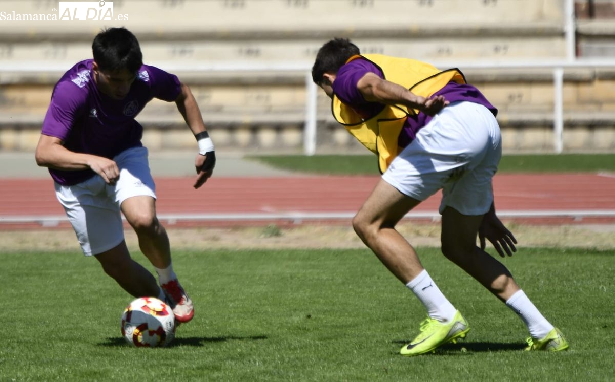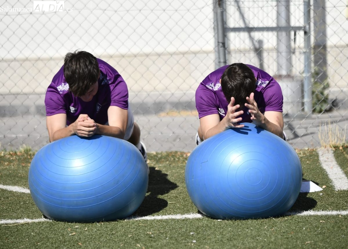 La plantilla del Salamanca UDS ha continuado este jueves, 24 de julio, con su preparación en las Pistas del Helmántico. La sesión matutina ha contado con una importante novedad: la incorporación al grupo de los dos últimos fichajes del club. Hugo Marcos y Hugo Parra ya se han puesto a las órdenes de un Jorge García que ha dirigido un entrenamiento de alta intensidad, centrado en inculcar los conceptos tácticos que quiere para el equipo.
