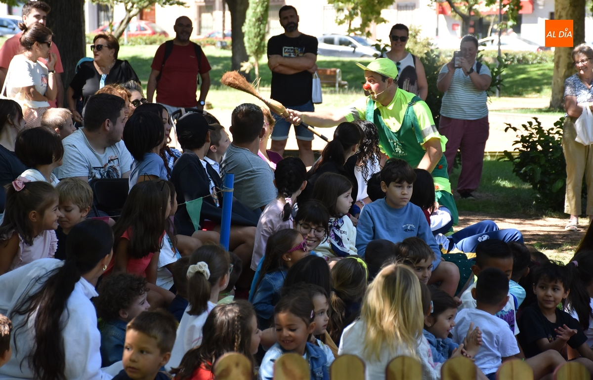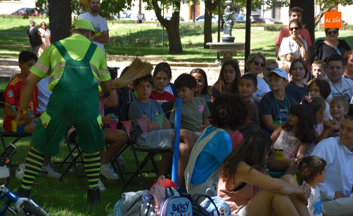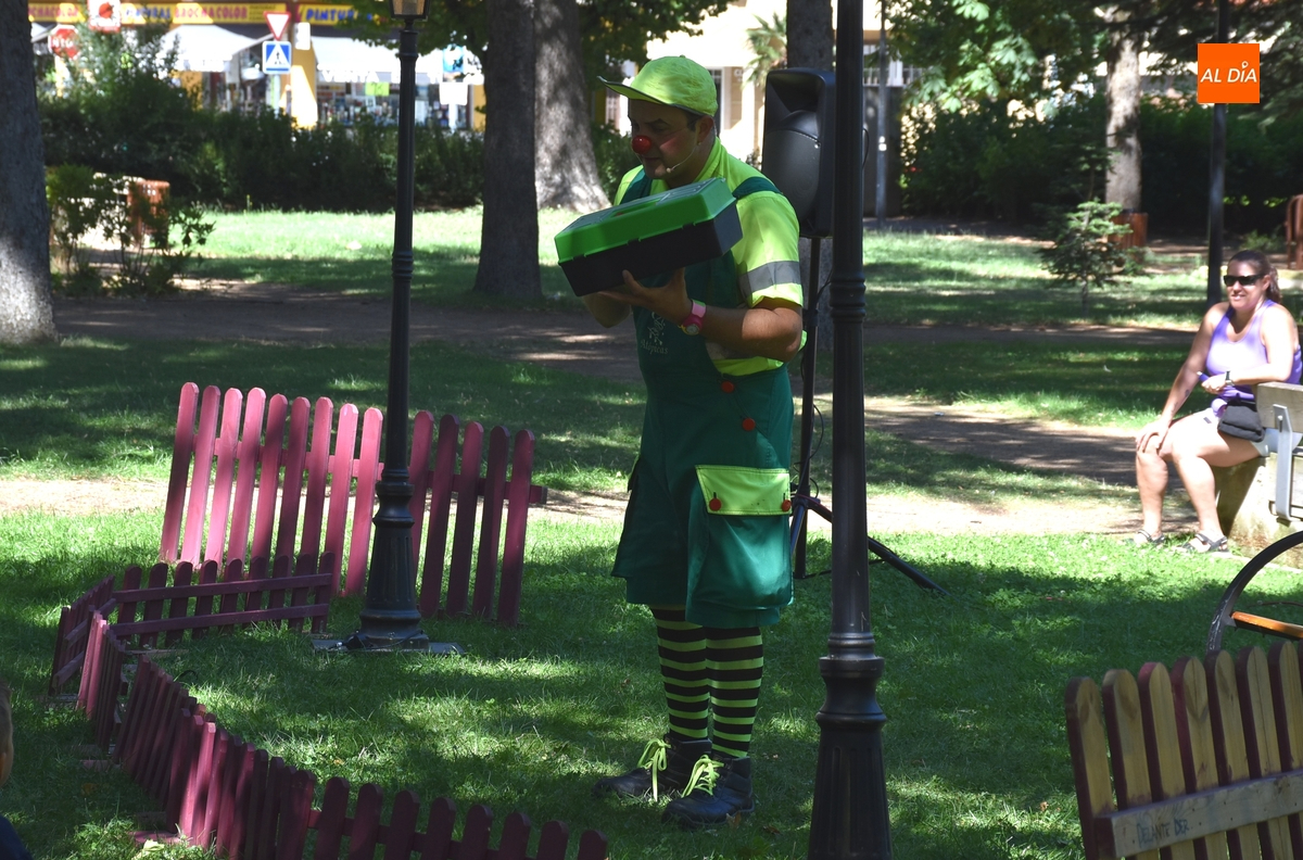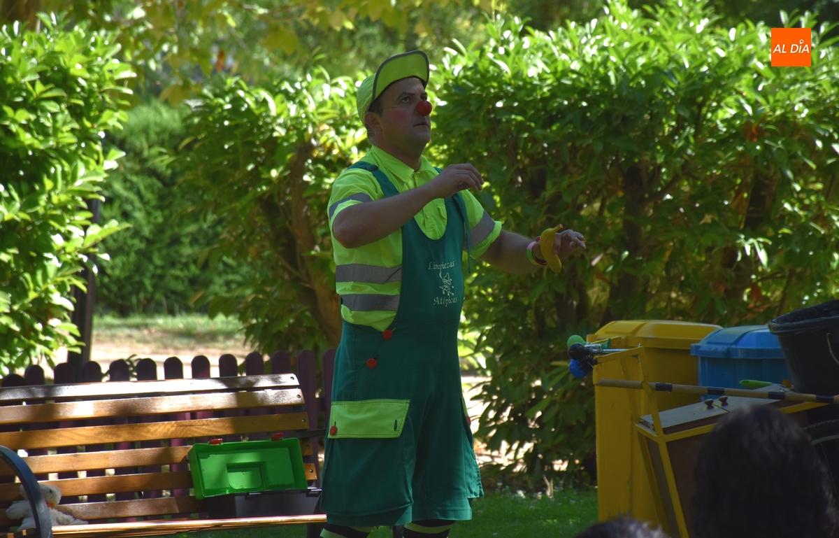 El ciclo de espectáculos escénicos con el que se está cerrando cada semana de actividad en el programa de animación infantil del Parque de La Florida de Ciudad Rodrigo continuó en la jornada del viernes de la mano de la compañía Teatro Atópico, quién acercó a este programa el personaje de Claudio Cleaner Clown.