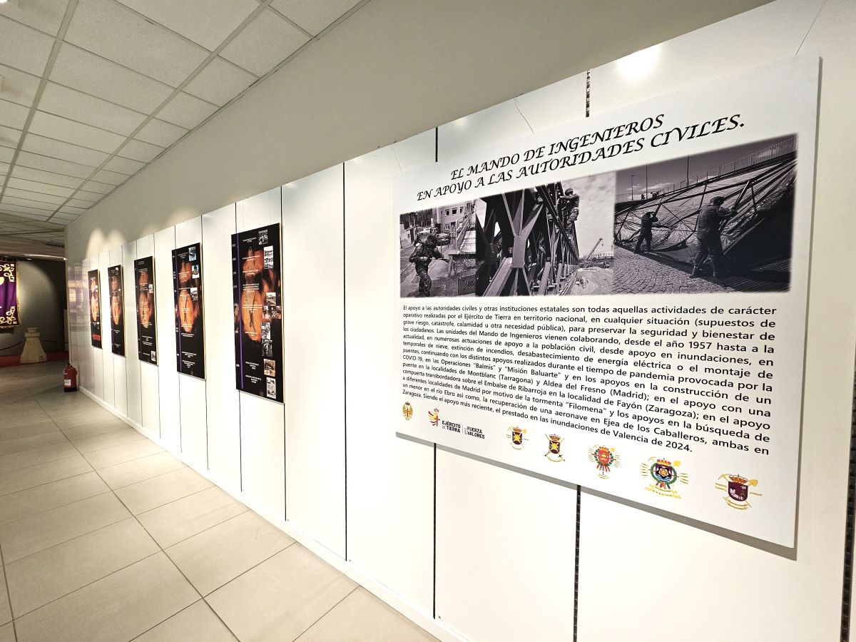 La muestra documenta una gran variedad de actuaciones cruciales para la sociedad. Entre las intervenciones más destacadas que se exponen se encuentran la respuesta a la pandemia de la COVID-19, a través de la "Operación Balmis" y la "Misión Baluarte". El apoyo en la construcción de puentes tras catástrofes naturales en Montblanc (Tarragona) y Aldea del Fresno (Madrid). La instalación de una compuerta transbordadora en el Embalse de Ribarroja, en la localidad de Fayón (Zaragoza). Las labores de auxilio y despeje durante la histórica tormenta Filomena y la colaboración más reciente durante las graves inundaciones que afectaron a Valencia en 2024.