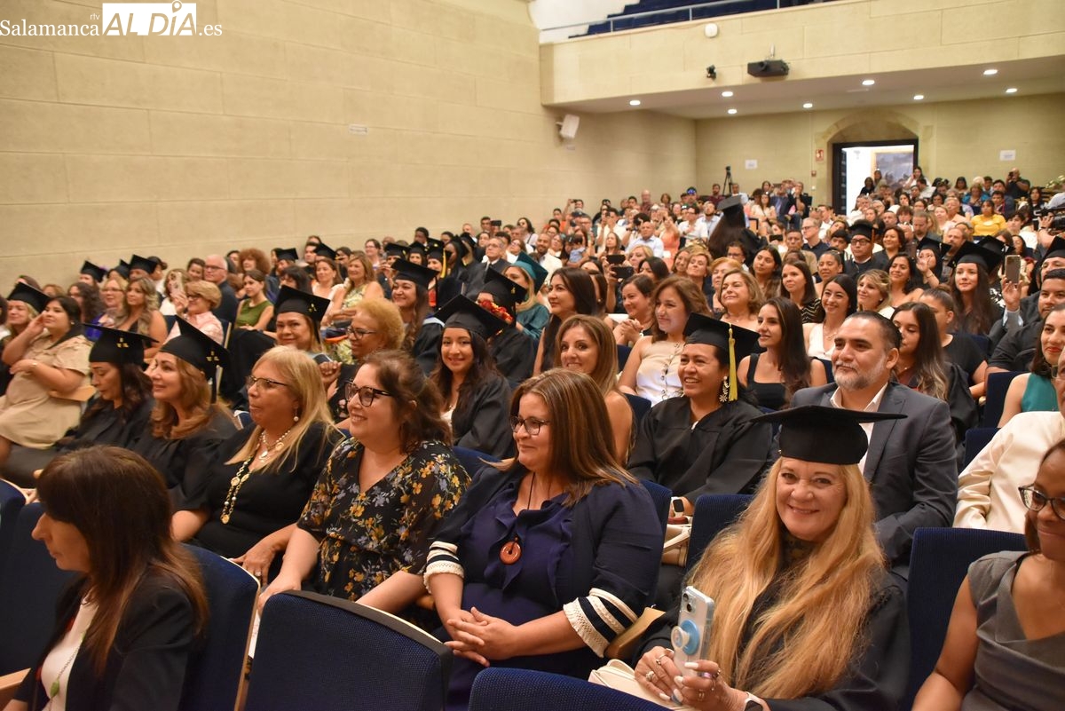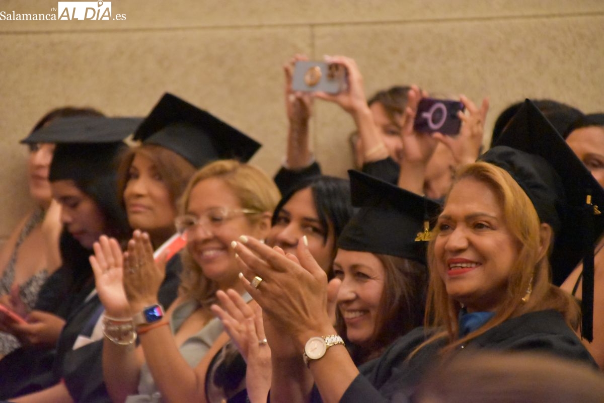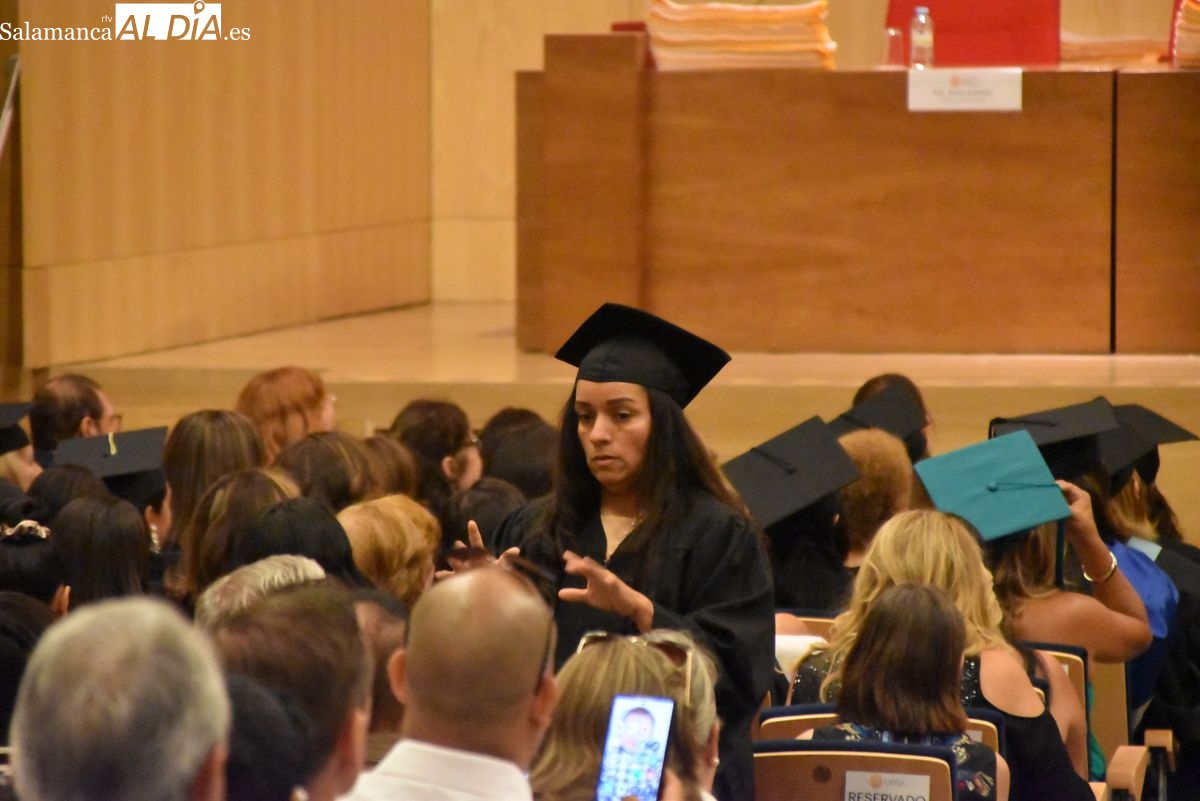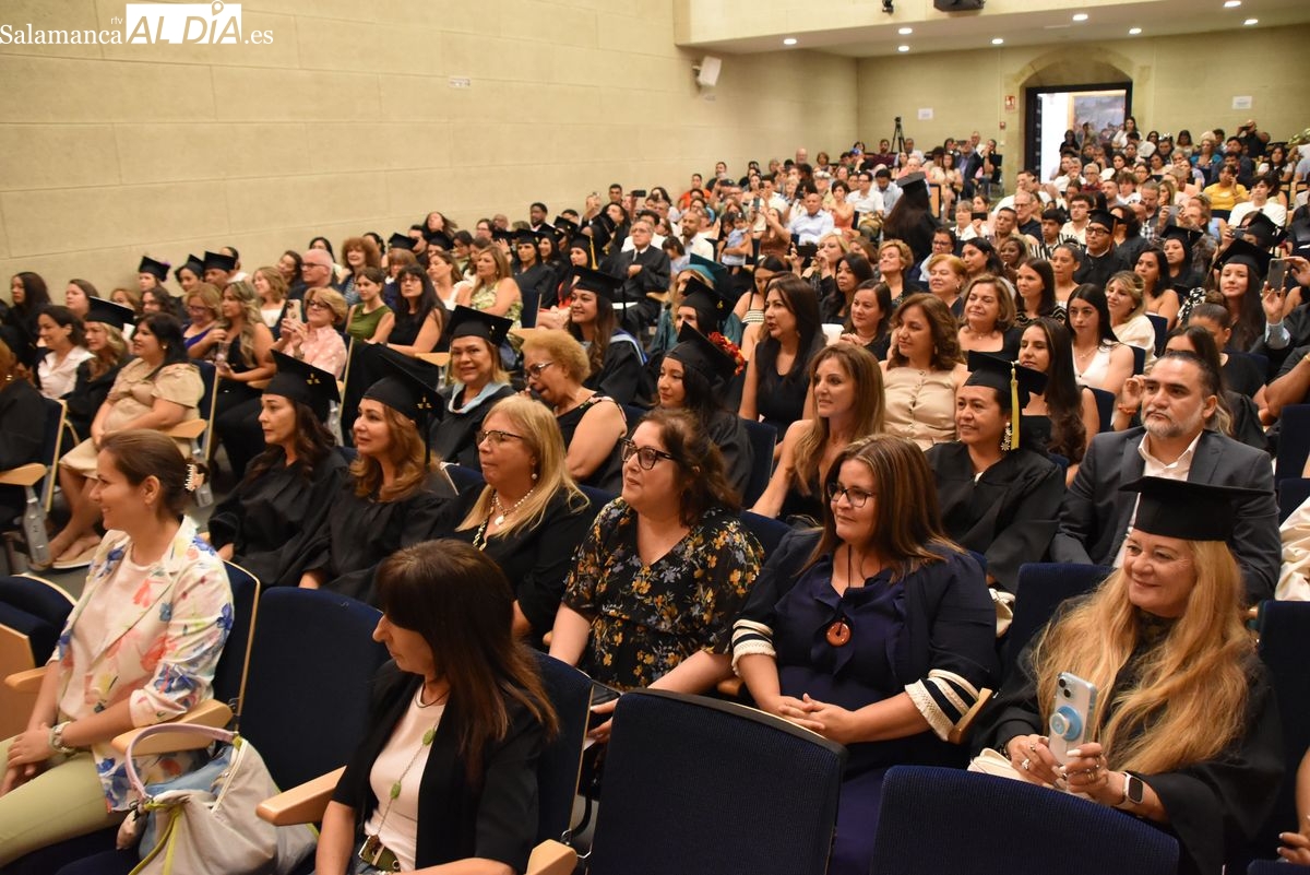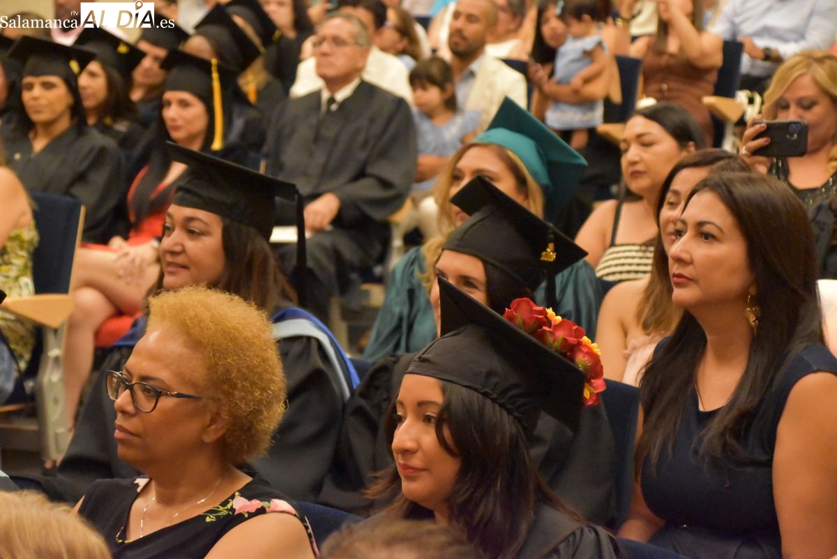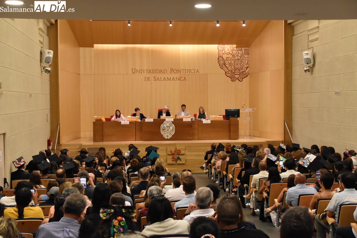 La Universidad Pontificia de Salamanca (UPSA) celebra este viernes, 25 de julio, la ceremonia de graduación de los 110 alumnos que han completado con éxito el Máster Internacional para Profesores de Lengua y Cultura Españolas y el Máster en Literatura Hispanoamericana y su Aplicación a la Docencia. Estos programas, impartidos por el Observatorio de Lengua Española de la UPSA y la Fundación para la Investigación y Desarrollo de la Cultura Española (FIDESCU), culminan para los estudiantes tras nueve meses de formación online y dos semanas intensivas de clases presenciales en la sede de la universidad.