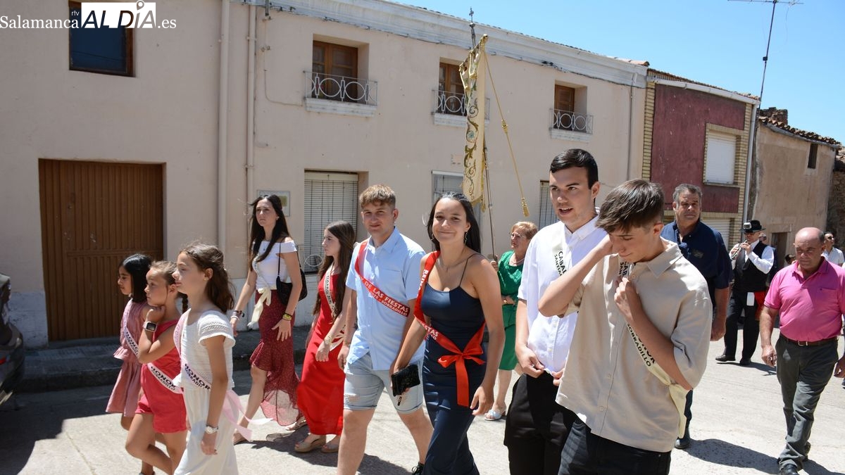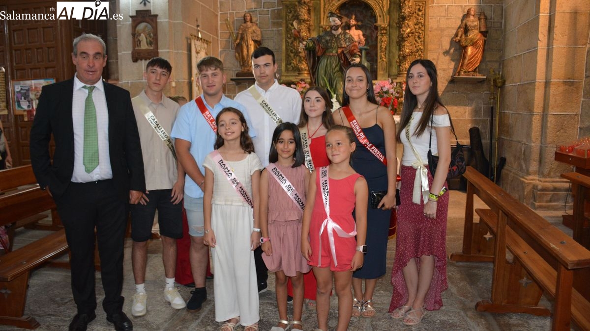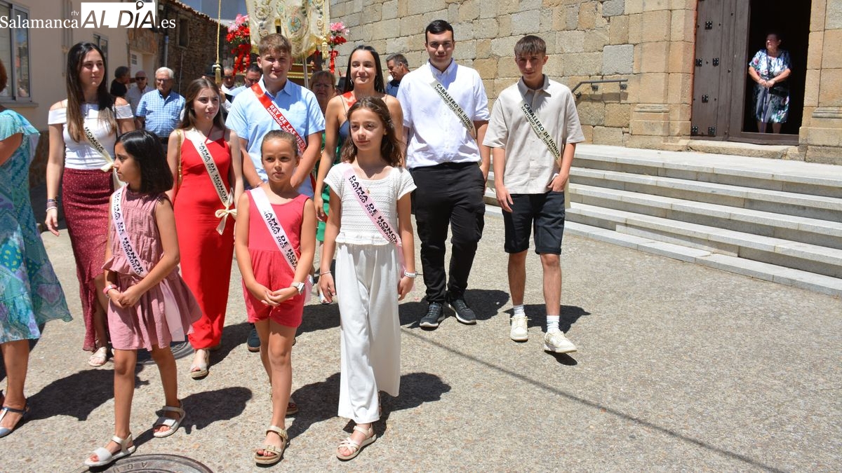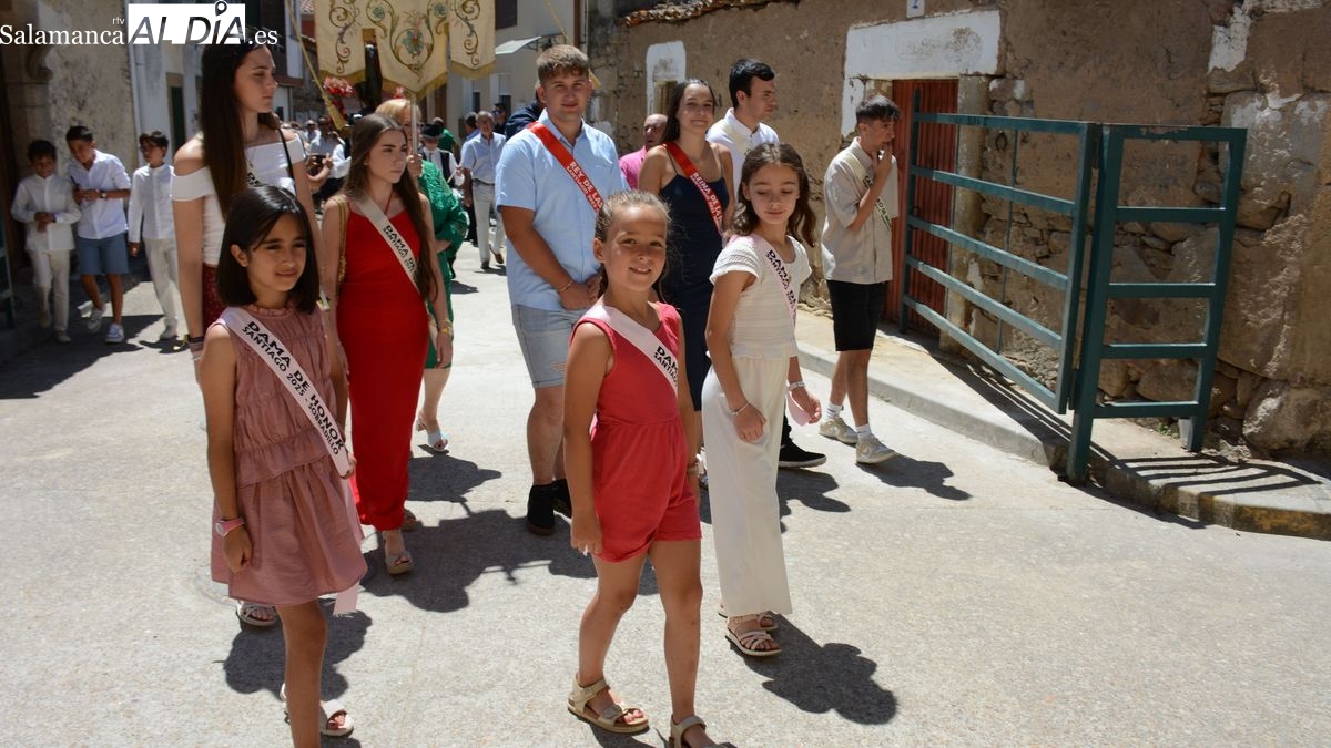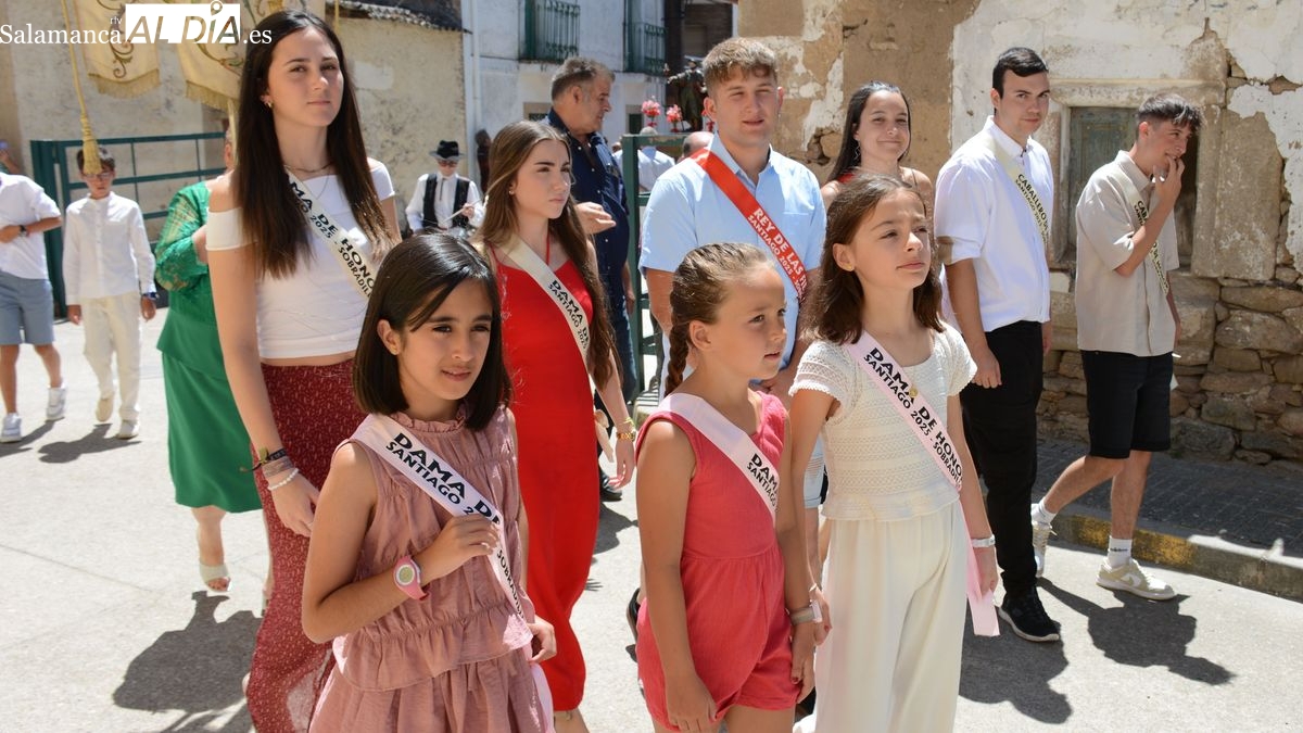 Las Cortes de honor juvenil e infantil de las fiestas de 2025 abrían paso a la procesión, acto en el que el alcalde y teniente de alcalde, José María González y José Martín, portaron las varas de mayordomos representando a la Corporación.