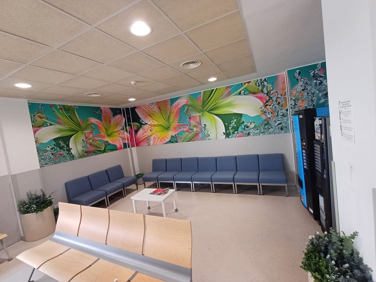 La mejora del Hospital de Día Oncohematológico se ha centrado en su sala de espera; lugar donde cada día se encuentran pacientes y acompañantes previamente a entrar en consulta o de recibir tratamientos. Ahora, el espacio se ha transformado añadiendo sillones, unas plantas artificiales, y colocando en las paredes unos floridos vinilos decorativos y una pantalla de televisión en la que se emitirá próximamente un contenido interno y personalizado, programado expresamente para estos lugares de espera con información lúdica y, también, de educación para la salud. Asimismo, se ha preparado una pequeña biblioteca para pacientes, con libros que los usuarios pueden tomar en préstamo y hacer más llevadera la espera.