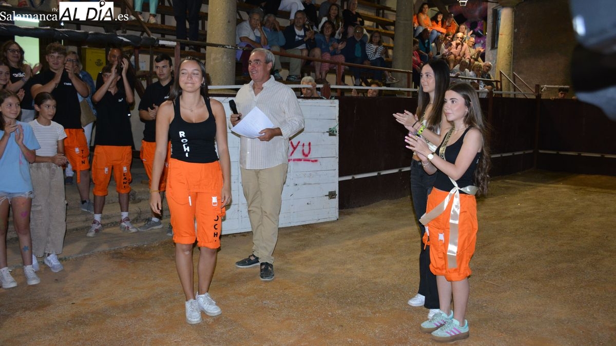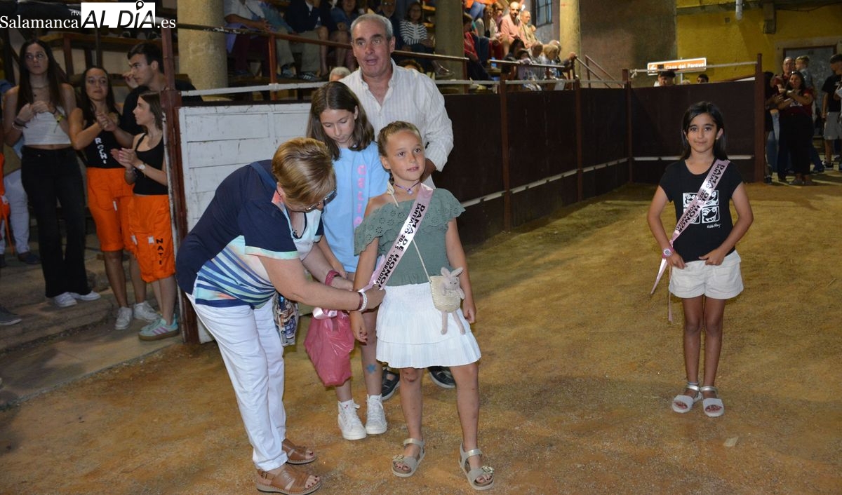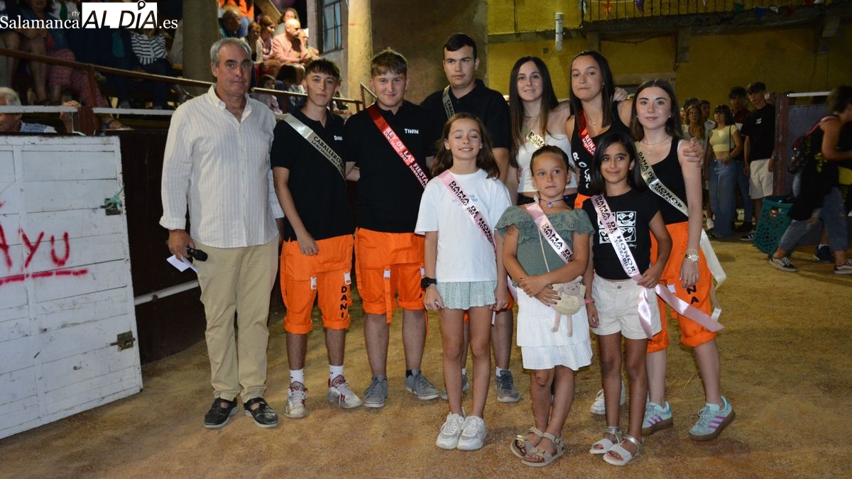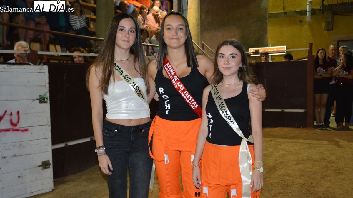 Antes de la capea, el coso taurino montado en la Plaza mayor, fue escenario también de dos emblemáticos actos: el Pregón de fiestas y la elección Damas, Caballeros, Rey y Reina de las Fiestas de 2025.