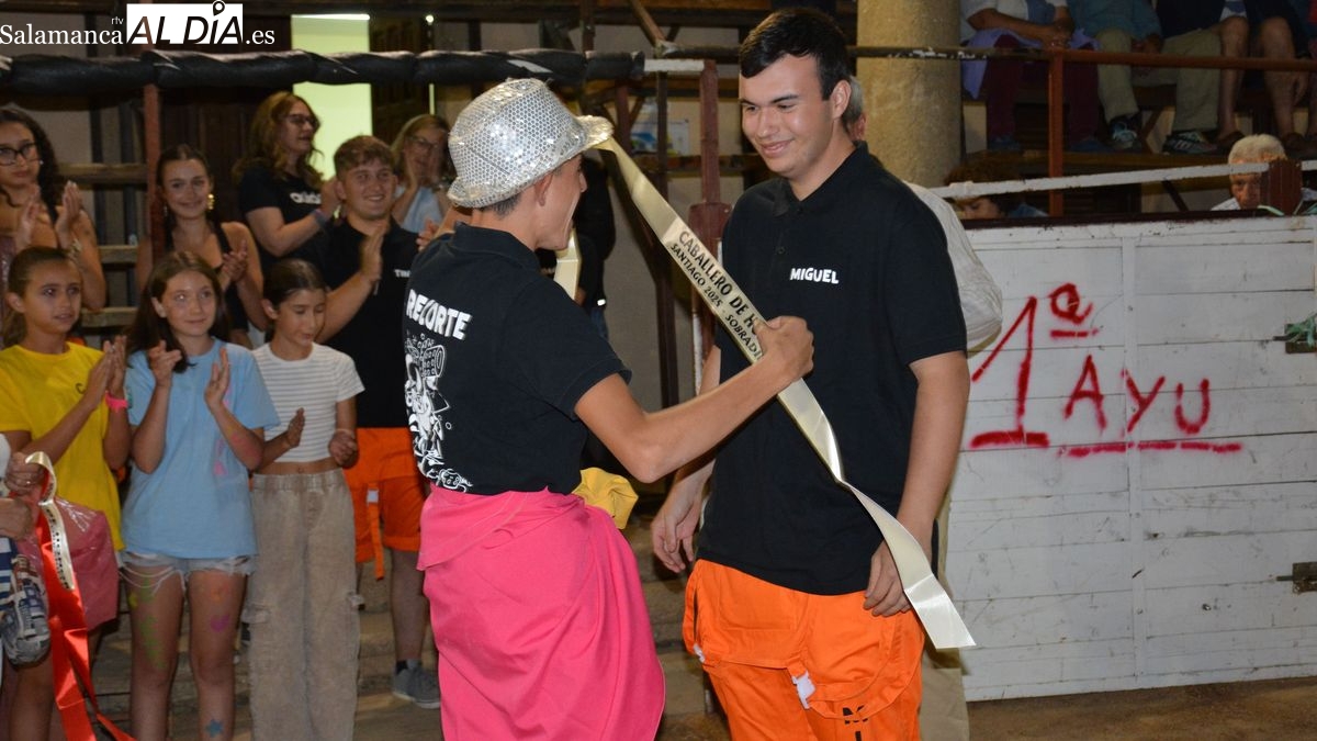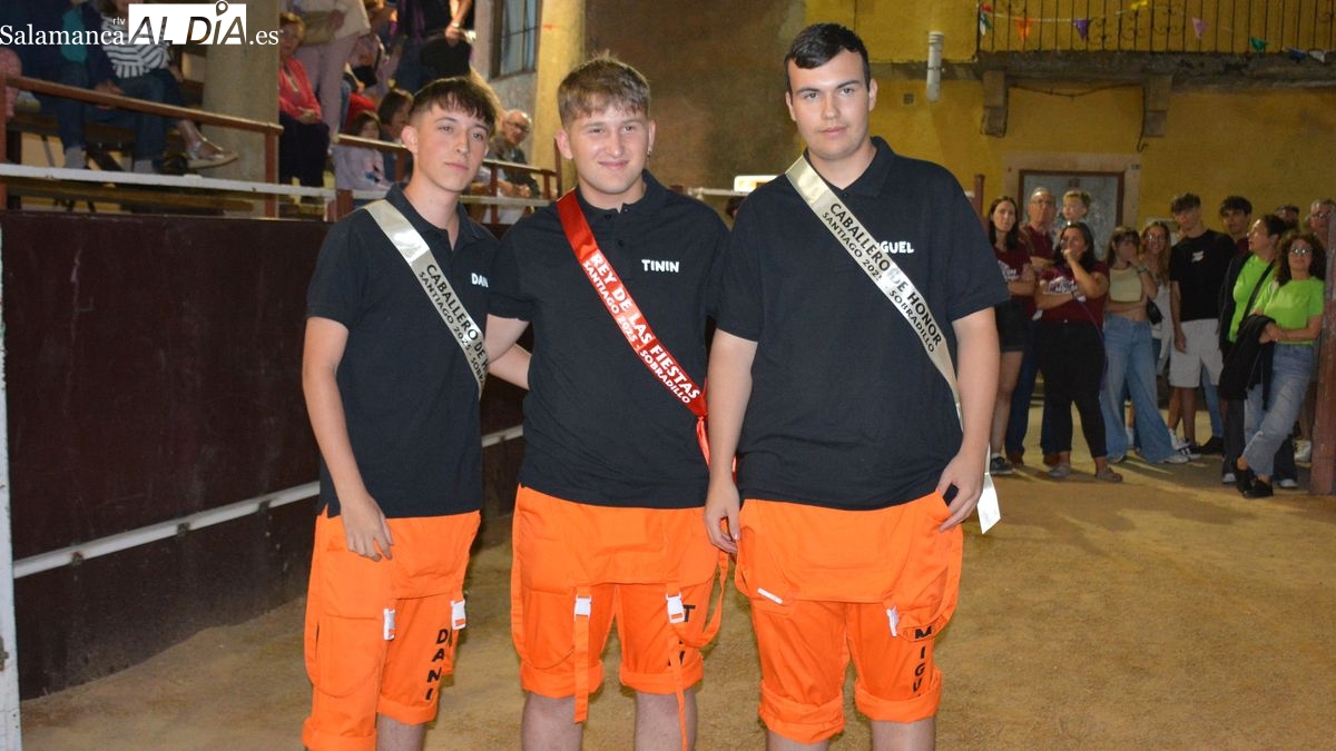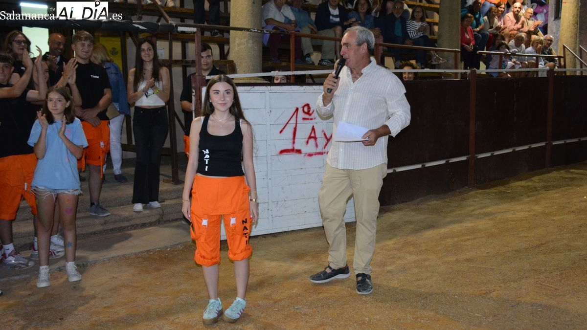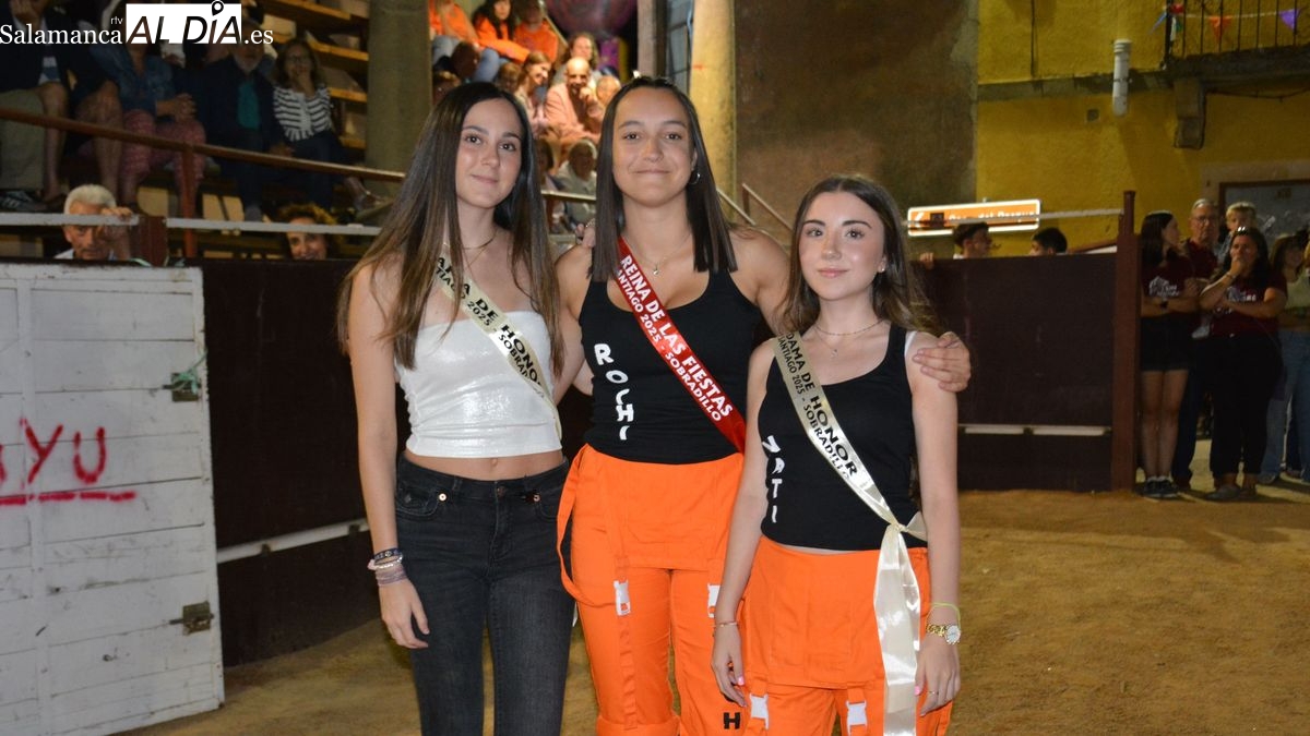 Antes de la capea, el coso taurino montado en la Plaza mayor, fue escenario también de dos emblemáticos actos: el Pregón de fiestas y la elección Damas, Caballeros, Rey y Reina de las Fiestas de 2025.