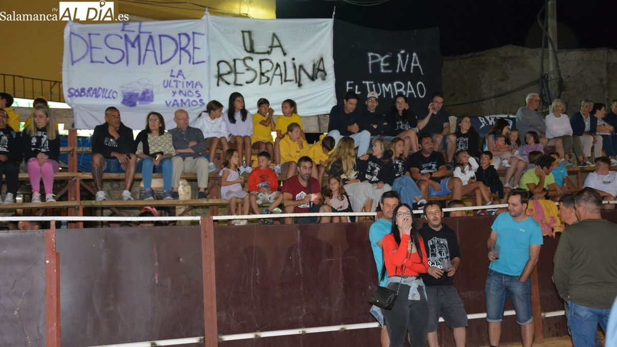 Sobradillenses y vecinos de los pueblos del entorno llenaron las gradas del coso taurino montado para contemplar del espectáculo. Hasta 4 vaquillas salieron a la arena donde los valientes aficionados, de Sobradillo y de otros pueblos de la zona, pudieron disfrutar haciendo recortes, saltos y dando pases, más o menos afortunados, a los astados. El público reconoció con aplausos el esfuerzo y el buen hacer de los recortadores y novilleros aficionados.