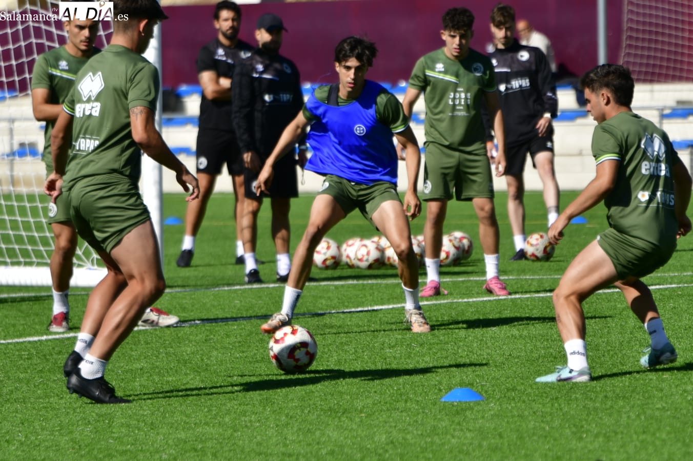 A continuación, el plantel se dividía en cuatro equipos y se realizaban partidillos en medio campo. Ha sido la segunda sesión del recién incorporado delantero Álex Pachón, quien ya trabaja como uno más junto a sus nuevos compañeros. Además, como otros años, se ha unido al grupo el veterano jugador Raúl Albentosa, ligado familiarmente a Salamanca.