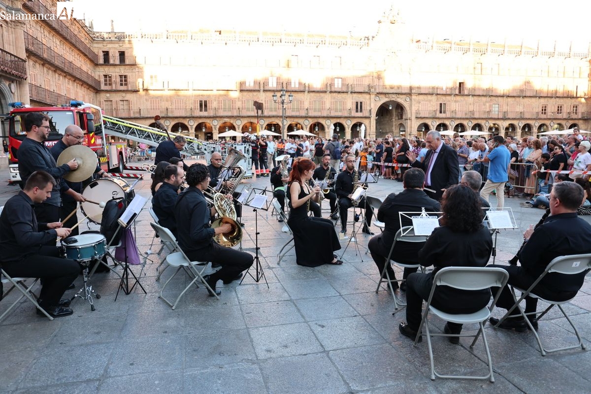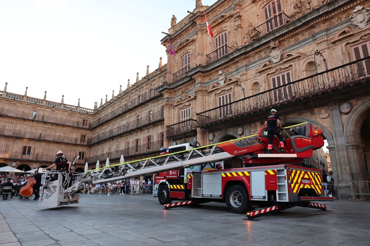 Los bomberos municipales de Salamanca han colocado este tradicional símbolo en un acto acompañado por pasodobles taurinos interpretados por la Banda Municipal